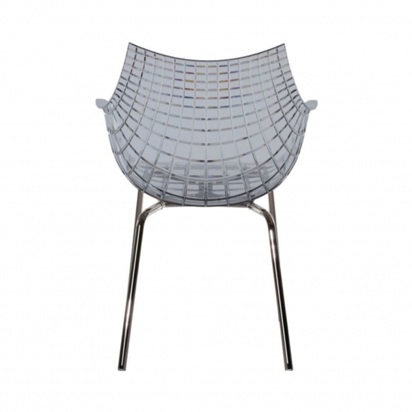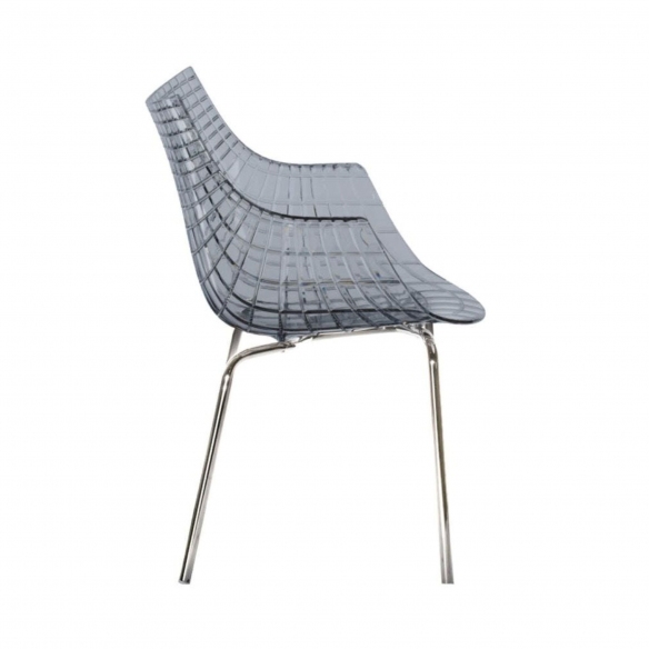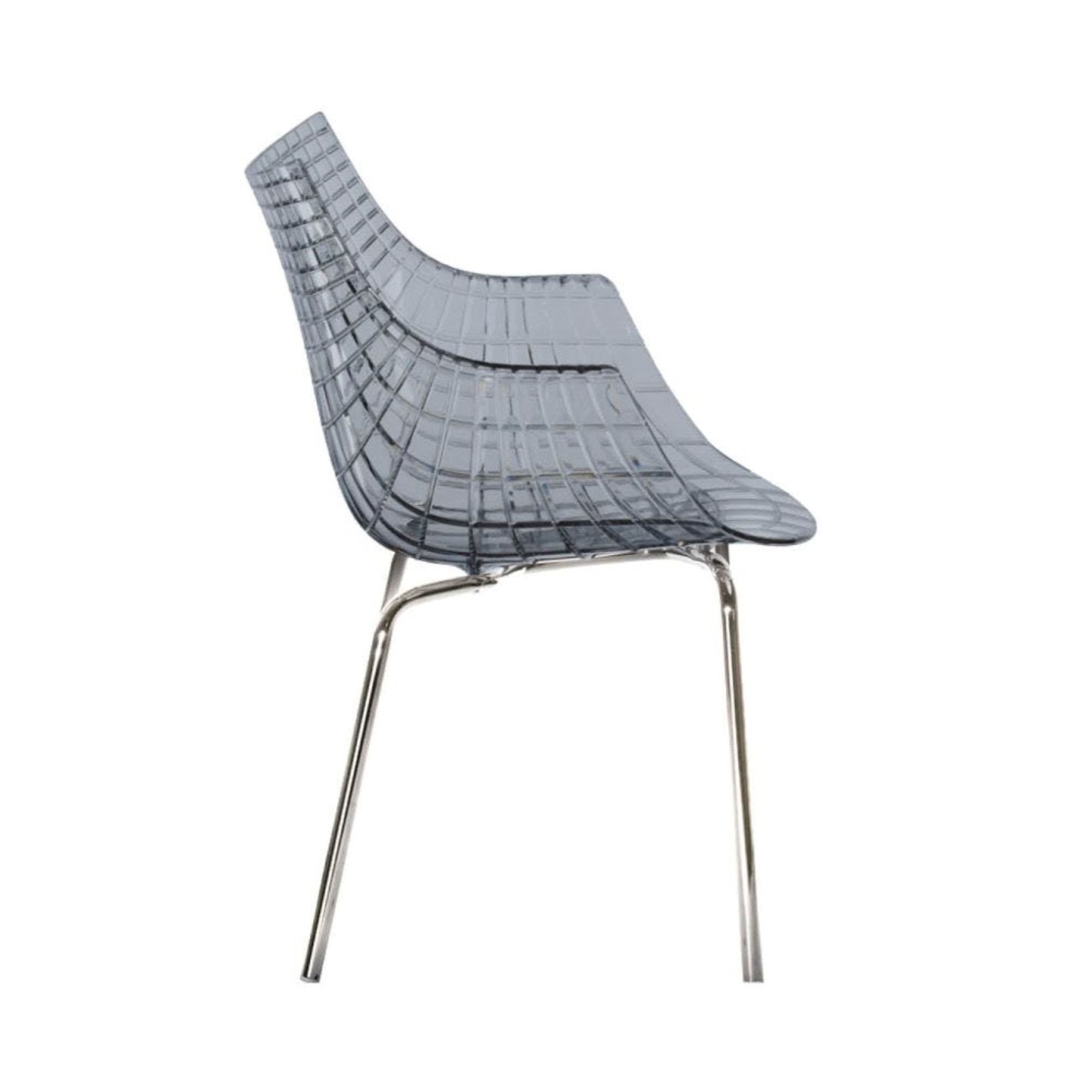 Meridiana chair made with polycarbonate seat and painted steel structure. Meridiana is a very elegant and versatile chair and is adaptable to any domestic environment, from the dining room to the office. It takes inspiration from the lines of the diamond, a feature that gives it extreme preciousness. The perfect armchair for lovers of suggestiveness in furnishing accessories. Designed by Christophe Pillet for Driade.