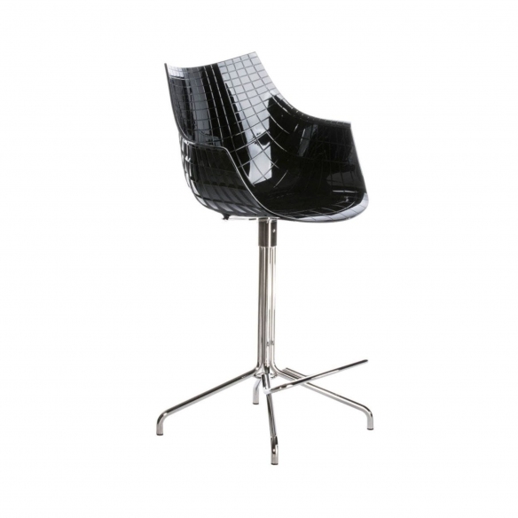 Meridiana made of polycarbonate swivel stool with chromed steel structure. Meridiana is a very elegant and versatile stool and is adaptable to any domestic environment, from the dining room to the office. It takes inspiration from the lines of the diamond, a feature that gives it extreme preciousness. The perfect stool for lovers of suggestiveness in furnishing accessories. Designed by Christophe Pillet for Driade.