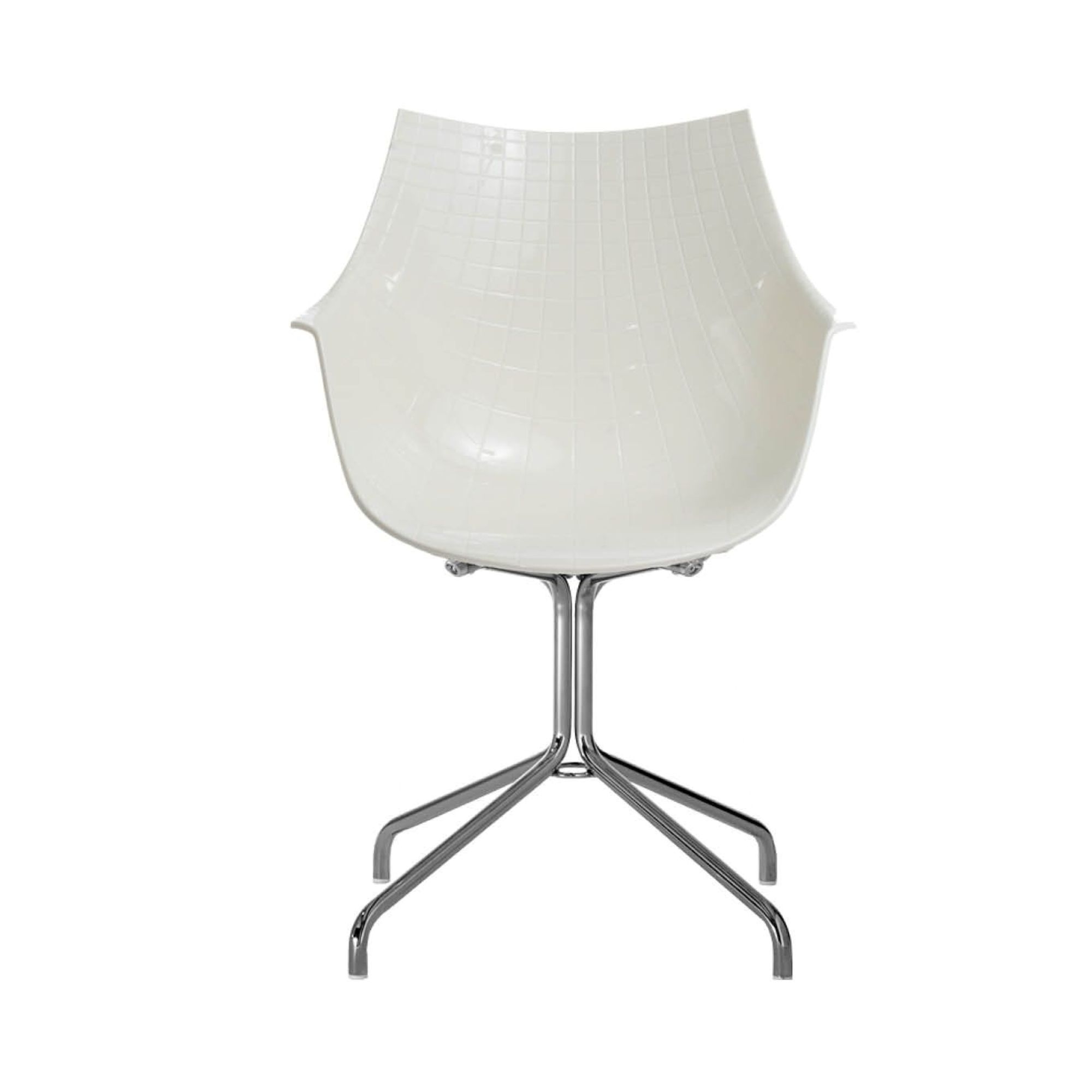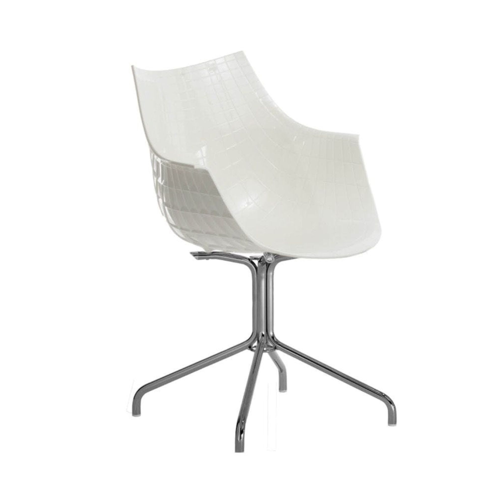Meridiana low swivel stool made with polycarbonate seat and painted steel structure. Available in 4 elegant color finishes, Meridiana is a very elegant and versatile stool and is adaptable to any domestic environment, from the dining room to the office. It takes inspiration from the lines of the diamond, a feature that gives it extreme preciousness. The perfect stool for lovers of suggestiveness in furnishing accessories. Designed by Christophe Pillet for Driade.