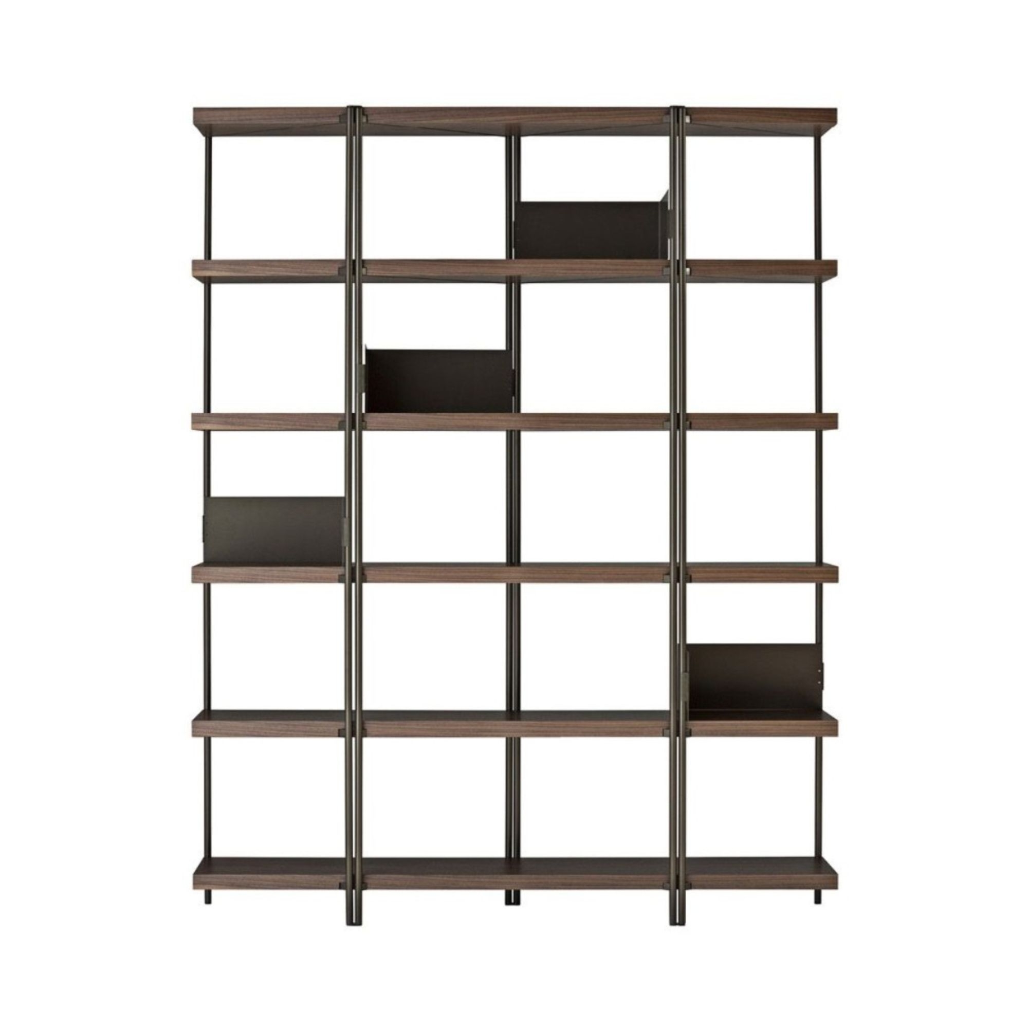 ZigZag bookcase with a height of 160 cm made with a steel structure painted with epoxy powders and shelves in oak, walnut or stainless steel. Characterized by a very simple and fresh design, the ZigZag bookcase and is perfect for all types of furniture. Compact and linear, ZigZag can be easily inserted in any space, thanks to the ability to adapt to multiple contexts. A work of art transformed into a piece of furniture, able to combine functionality and retro style in a unique way. Designed by Kostantin Grcic for Driade.