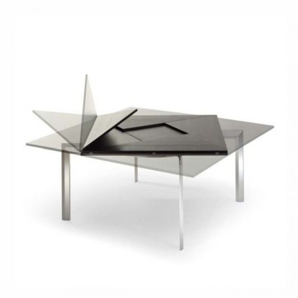 Extendable oak table by rotating the top and opening the sides, designed by Lidor Gilad E Yotam Shabtai for BBB Italia