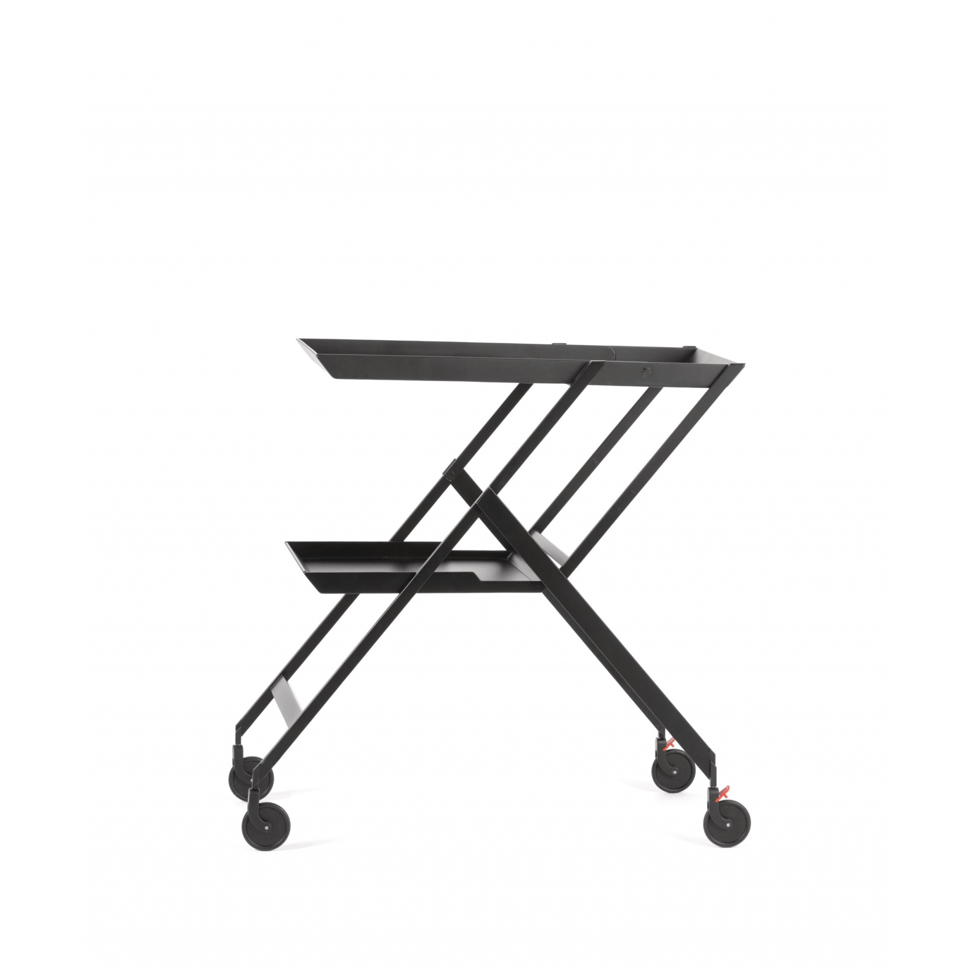 Plico folding cart in colored steel with black epoxy resin. Tops in polyurethane, designed by Richard Sapper for Alessi