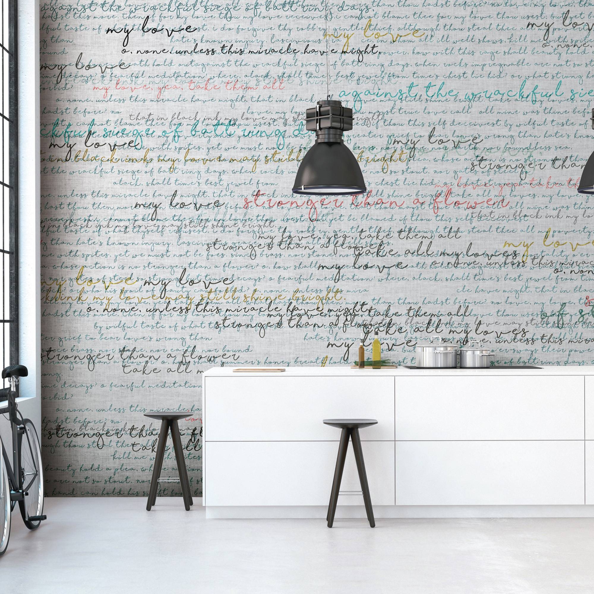 Wall Writing is a wallpaper collection with a unique and original style. This collection is inspired by the power and beauty of words, with wallpapers that write them on the walls with always different and original styles, as if they were works of art. Each wallpaper is an explosion of words, which create surprising and harmonious visual effects. Wall Writing wallpapers are perfect for decorating any room in the house, from the living room to the bedroom, from the study to the bathroom, giving a feeling of dynamism and personality. Wall Writing wallpapers are also versatile and easy to match, as they adapt to different furnishing styles, from modern to classic, from minimal to pop. Wall Writing wallpapers are also produced with high quality materials, which guarantee a sharp and brilliant print, resistance to wear and atmospheric agents, and easy application and removal. With the Caos Creativo Wall Writing collection, you can transform your home into a place where words are the protagonists.