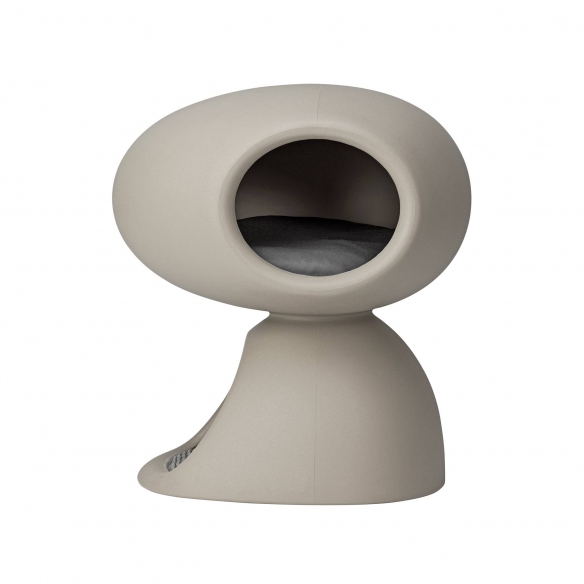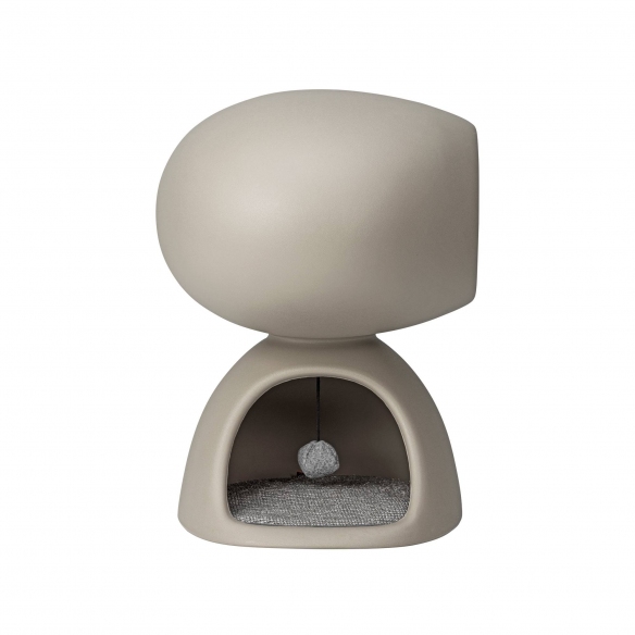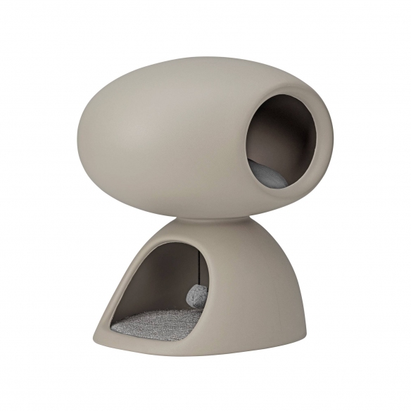 The Cat Cave is a cat house-cave-shelter, created by Qeeboo entirely from recyclable polyethylene, a top-tier material that ensures durability, longevity, and versatility. This cat refuge is a work of art comprised of two superimposed stones: the lower cave with a scratch pad on the floor and a soft ball hanging from the ceiling. The upper part is characterized by a porthole that allows the cat to enter, protect itself, and examine the outside world, planning its next domestic attack. Available in 2 beautiful and vibrant colors, this haven is ideal for your little feline. The attention to detail and the quality of the materials used highlight Qeeboo's commitment to creating products that improve the daily lives of both animals and their owners. Its presence in a room enriches the space, adding a touch of playfulness and originality. Designed by Stefano Giovannoni for Qeeboo.