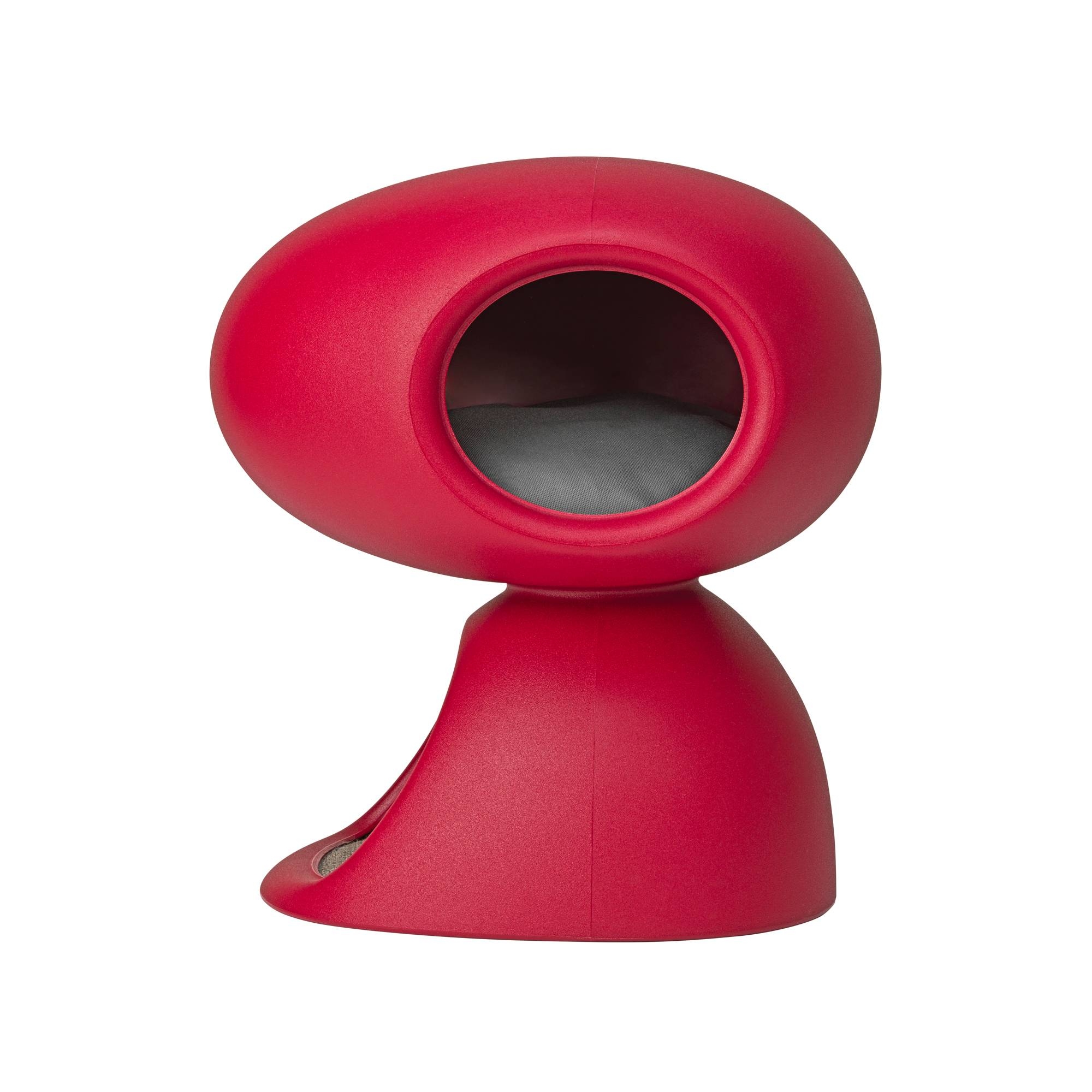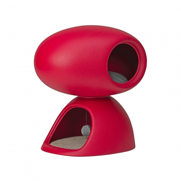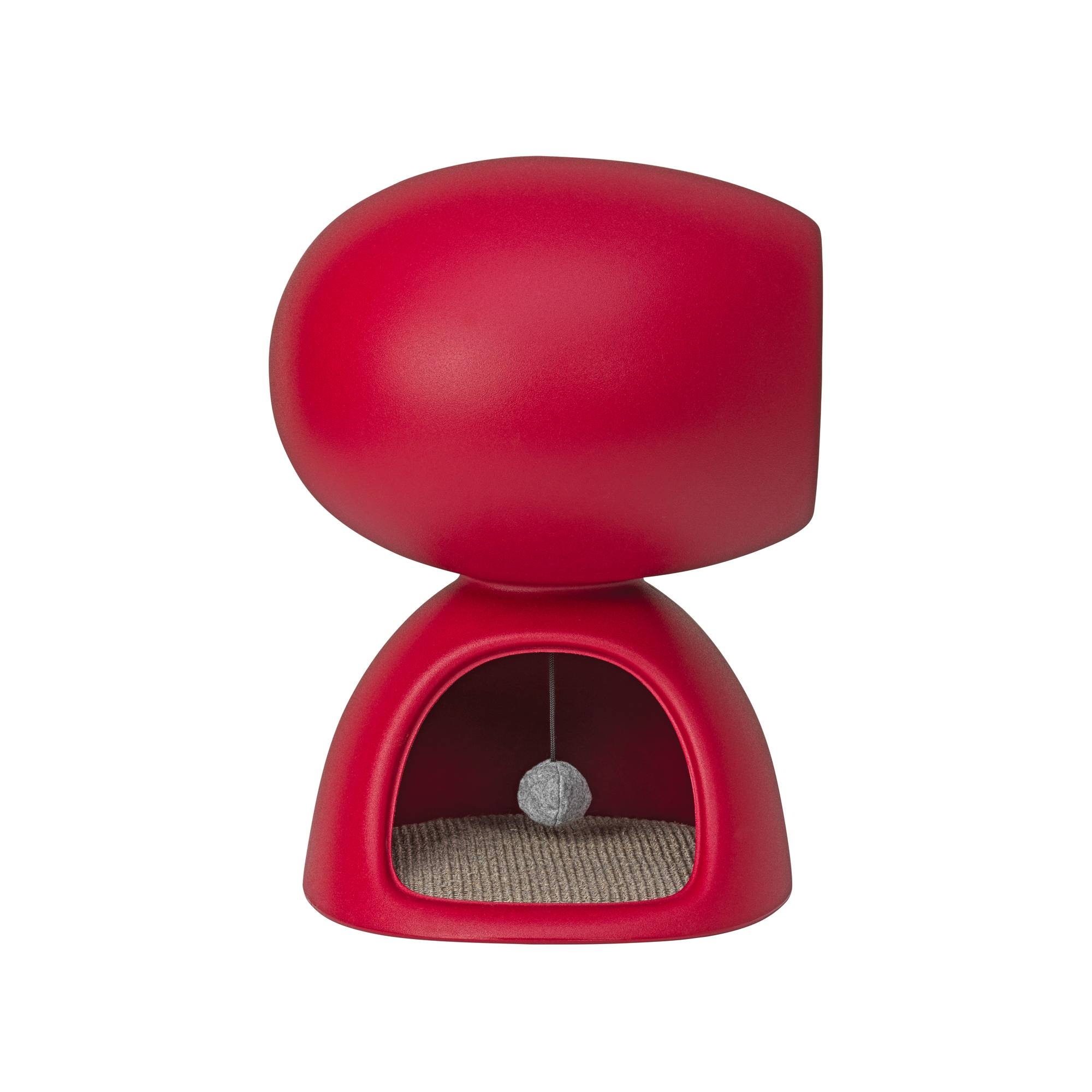 The Cat Cave is a cat house-cave-shelter, created by Qeeboo entirely from recyclable polyethylene, a top-tier material that ensures durability, longevity, and versatility. This cat refuge is a work of art comprised of two superimposed stones: the lower cave with a scratch pad on the floor and a soft ball hanging from the ceiling. The upper part is characterized by a porthole that allows the cat to enter, protect itself, and examine the outside world, planning its next domestic attack. Available in 2 beautiful and vibrant colors, this haven is ideal for your little feline. The attention to detail and the quality of the materials used highlight Qeeboo's commitment to creating products that improve the daily lives of both animals and their owners. Its presence in a room enriches the space, adding a touch of playfulness and originality. Designed by Stefano Giovannoni for Qeeboo.