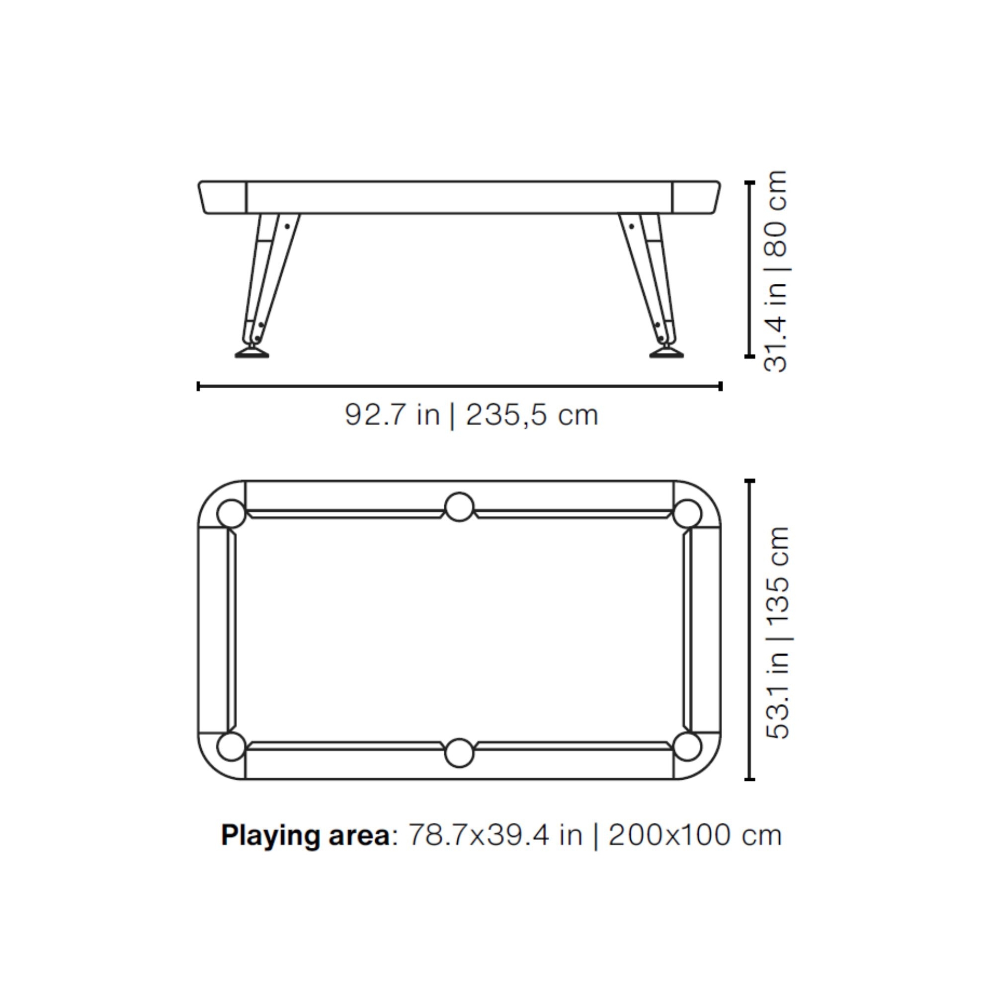 The Diagonal Outdoor Pool Table (7 ft American) transforms any space of your home into a unique and unparalleled game room; crafted by RS Barcelona with a painted steel structure primed, Sunbrella fabric, a 20 mm thick compact fiber cement table, painted steel legs, Iroko wood, oak, and walnut, and finally, a premium K-66 rubber cushion, the Diagonal Outdoor Pool Table ensures fun, longevity, and durability. Available in various combinations, the Diagonal Outdoor Pool Table can easily match any decor style and setting: whether it's placed on a large, avant-garde design terrace, in a modern veranda, or in the garden, Diagonal will amaze all your guests and give you unforgettable moments of conviviality and challenge. Moreover, the design of this pool table is unique, thanks to its inclined legs that not only give the table a contemporary look but also ensure stability and safety during play. What are you waiting for? Hurry and purchase this beautiful Diagonal Outdoor Pool Table (7 ft American) on Newpop.it! Invite your friends and enjoy the game without sacrificing design. Designed by Yonoh Studio for RS Barcelona.