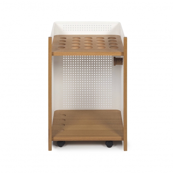The Mou Indoor floor cue rack represents a beautiful accessory for all billiards enthusiasts; crafted by RS Barcelona with a steel structure finished in polyester paint, the storage shelves and edges made of iroko, oak, or walnut wood, the Mou cue rack is a true piece of design that enhances your gaming corner, ensuring durability, longevity, and innovation. Available in various finishes and colors, this floor cue rack harmoniously matches any style of decor and setting: whether placed inside a modern-designed living room or in a cutting-edge game room next to the billiard table, Mou's task is to keep all your billiard accessories safe in one place. Moreover, thanks to the wheels, this accessory is easily transportable according to the user's needs. Every accessory has its assigned space inside the floor cue rack: there's also room for other items such as CDs, records, or glasses, so your game can truly be an opportunity to relax and have fun. Hurry and purchase this wonderful Mou Indoor floor cue rack right here, on Newpop.it! Designed by Yonoh Studio for RS Barcelona.