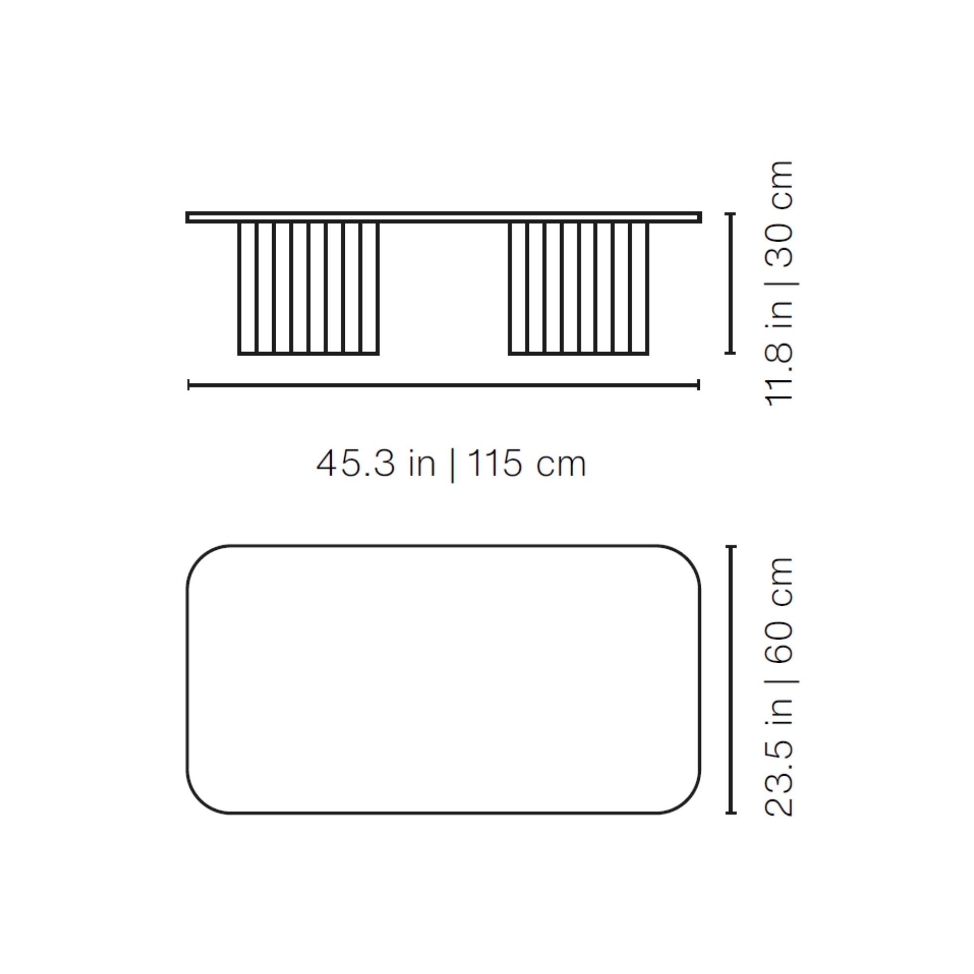 The Plec indoor/outdoor coffee table, in its large rectangular version, is a true expression of functional and elegant design, made by RS Barcelona with a steel structure utilizing cathodic dip coating and micro-textured polyester powder paint, and a steel or marble top. This table is available in various finishes and colors and is capable of adapting to any environment with different furnishing styles. Whether placed in a modern dining room, as a console in a hotel room, or in your garden surrounded by plants and flowers, Plec will capture the attention of all your guests and become the focal point of the space. Additionally, the accordion shape of its legs creates light and shadow effects at any time of the day, making the atmosphere unique and welcoming. The table's top is spacious and compact, perfect for hosting various items such as vases, plants, or work objects. The Plec coffee table is an excellent choice for those who seek a combination of style, functionality, and innovative design. What are you waiting for? Hurry up and purchase this table right here at Newpop.it! Designed by Antoni Pallejà Office for RS Barcelona.