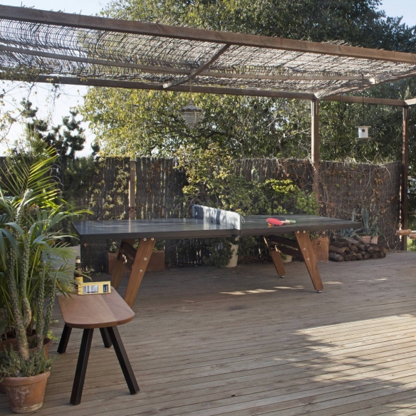 The RS Stationary ping pong table is a fabulous accessory that will enhance evenings with friends; crafted by RS Barcelona with a steel structure through a cataphoretic coating process and polyester paint, HPL top, Iroko wood legs, and polyester fabric net, the RS Stationary ping pong table ensures durability, longevity, and innovation. Available in two beautiful combinations, this ping pong table is a versatile and elegant piece of furniture that harmoniously matches any setting: whether placed outside in a garden, inside a home game room, or on a terrace, RS Stationary invites you to play without limits, to give your all because you know it can handle it. Moreover, thanks to the high-quality materials, this ping pong table can be easily moved both inside and outside your home, as it is perfect for all types of terrain. The RS Stationary ping pong table is an invitation to share moments of joy, a design piece that encourages team spirit and healthy competition. Designed by Rafael Rodríguez for RS Barcelona.