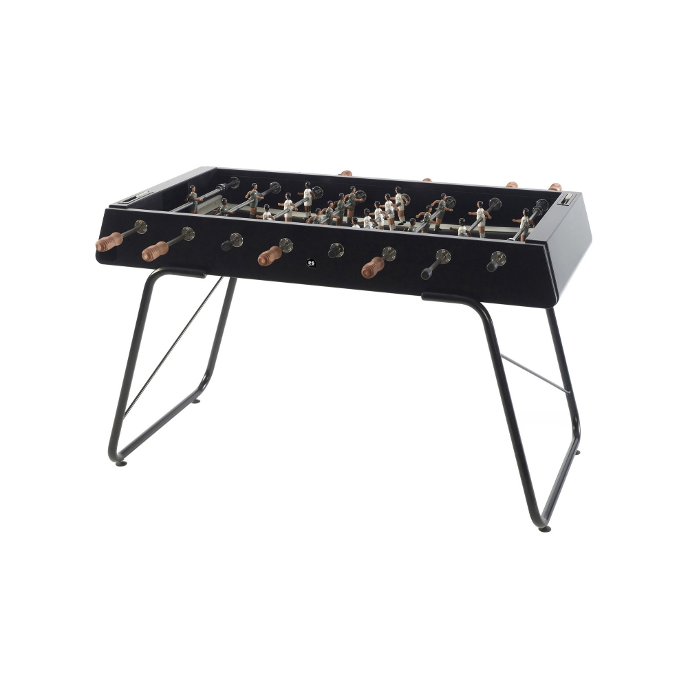 The RS3 indoor/outdoor football table is a symbol of unique and special design; crafted by RS Barcelona with a steel structure using a cathodic dip coating process and micro-textured polyester powder paint, Iroko wood handles, HPL field, and aluminum players, the RS3 indoor/outdoor has been designed with creativity and ingenuity. Available in various colors, the RS3 football table harmoniously matches all styles and settings: whether it's a bar, a common area at a workplace, a private home game room, or a porch, it's a table that will always be the center of attention. Thanks to its size, this indoor table offers space for 4 players, making it ideal for parties, dinners, pool afternoons, or simply moments of everyday sharing. Furthermore, the RS3 indoor/outdoor is customizable: you can choose your favorite teams, the color of the field, decide whether to have male, female, mixed teams, the color of their skin, and whether to have players with legs together or apart; in short, the RS3 indoor/outdoor football table is the perfect combination of innovation, functionality, and fun. Designed by Rafael Rodríguez for RS Barcelona.