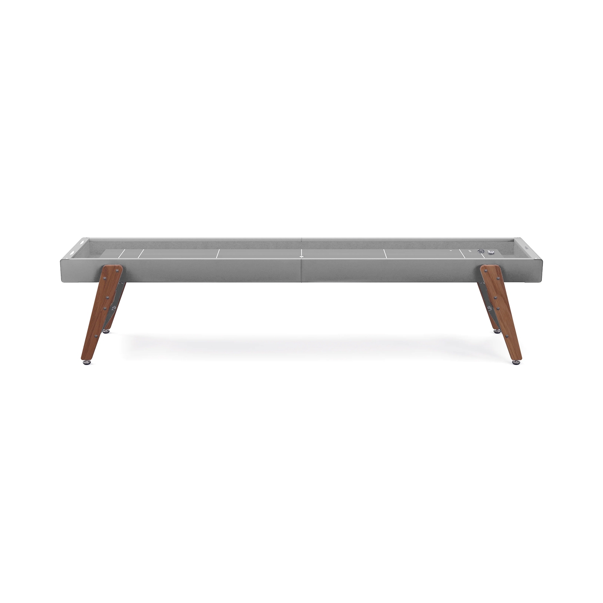 The Track shuffleboard table (12 ft American) by RS Barcelona is a masterstroke of design, melding style, fun, and quality into one exceptional piece. Crafted with a steel structure utilizing a cataphoretic coating process and fine-textured micro powder polyester paint, a game field of painted steel and two-component epoxy resin, FSC/PEFC certified Iroko wood legs, and a 100% PET (60% recycled) internal Textel Echo 9 lining, the Track table guarantees endless entertainment hours. Available in various colors, this shuffleboard table seamlessly blends with any decor or style, whether situated in a home game area, office, or public space, making it a visually striking piece that captures the interest of guests. Additionally, the table includes a set of discs (8 units) and 450 grams (1 pound) of shuffleboard powder to optimize the playing experience. The Track shuffleboard table is more than just a game: it is a statement of style, designed to foster interaction and enjoyment among friends, family, or colleagues. Conceived by Rafael Rodríguez for RS Barcelona.