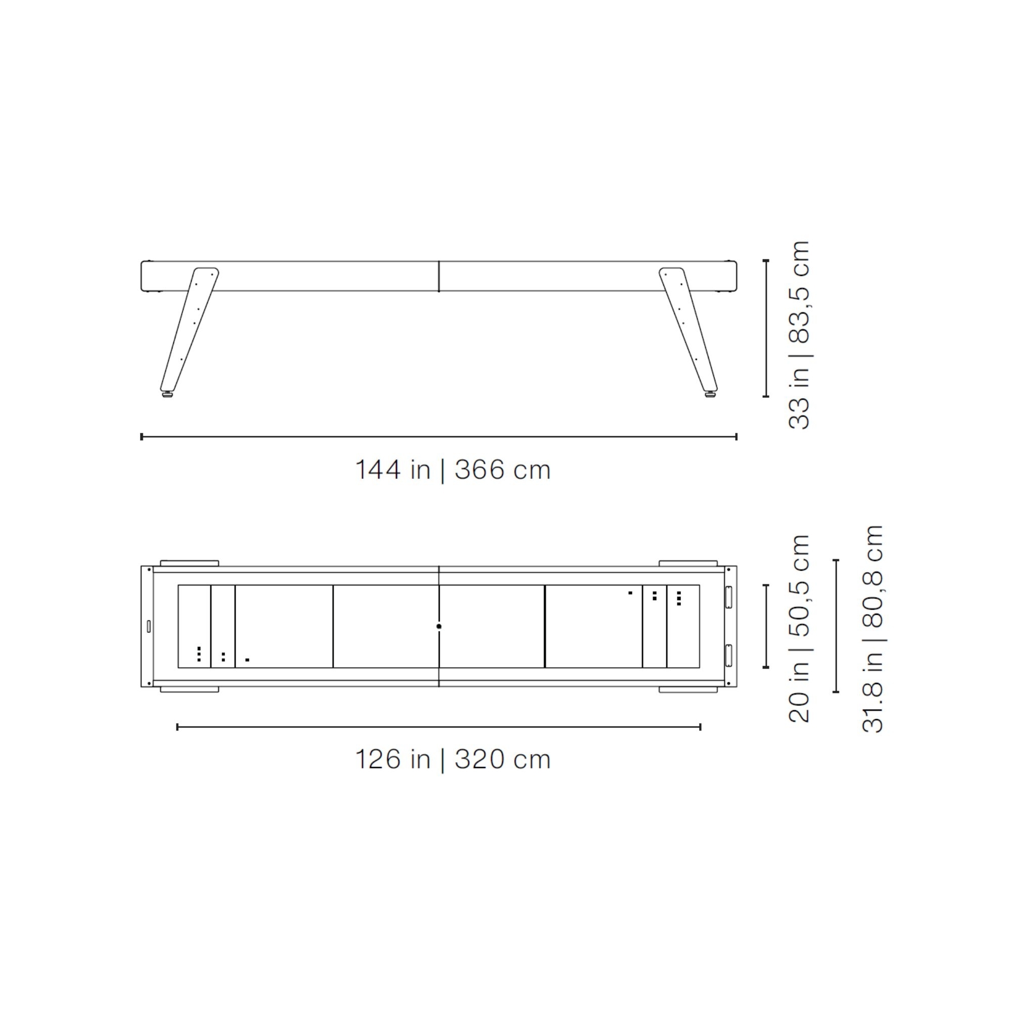 Dimensions: Length 366 cm, Height 83.5 cm, Depth 50.5 cm, Top length 320 cm
