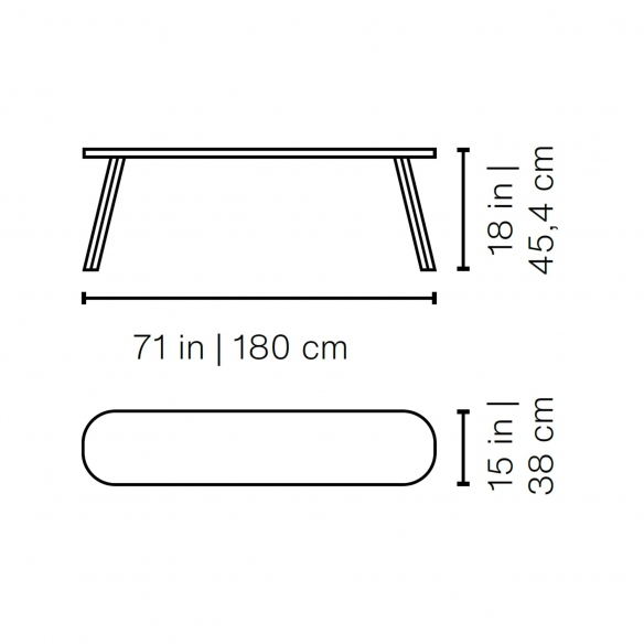 Dimensions: Length 180 cm, Depth 38 cm, Height 45.4 cm