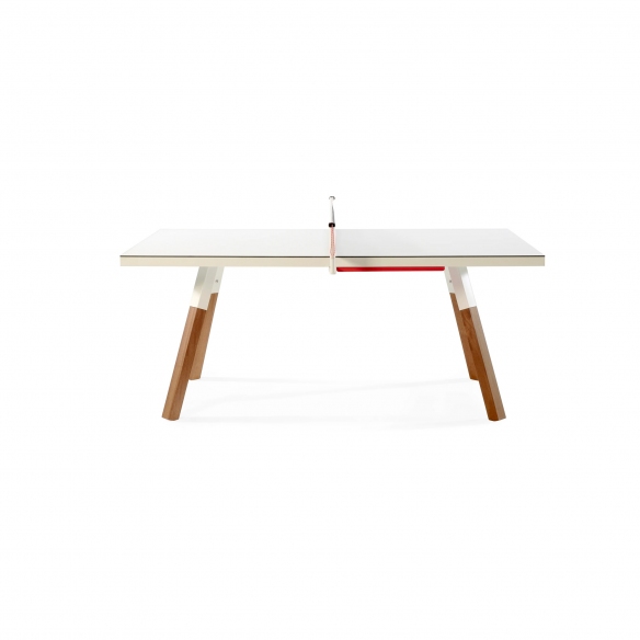 The You and Me indoor ping pong table, in his small version, is a fabulous accessory that will enhance evenings with friends; crafted by RS Barcelona with a painted steel structure, wooden playing surface and legs in walnut or oak, and a polyester fabric net, the You and Me small ping pong table ensures durability, longevity, and innovation. Available in four beautiful combinations, this ping pong table is a versatile and stylish piece of furniture that harmoniously fits into any setting: whether it’s placed in a modern-style living room, inside a home game room or in a common area at the office, the You and Me small invites you to play without limits, to give it your all, because you know it can handle it. Furthermore, in line with the philosophy of RS Barcelona, the ping pong table can be customized with special finishes, colors, and even logos, making You and Me a special and unique article. The You and Me small ping pong table is an invitation to share moments of joy, a design piece that stimulates team spirit and healthy competition. Designed by Antoni Pallejà Office for RS Barcelona.