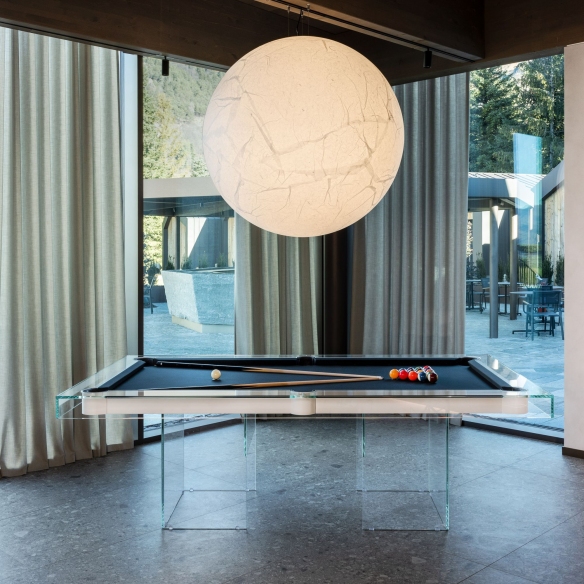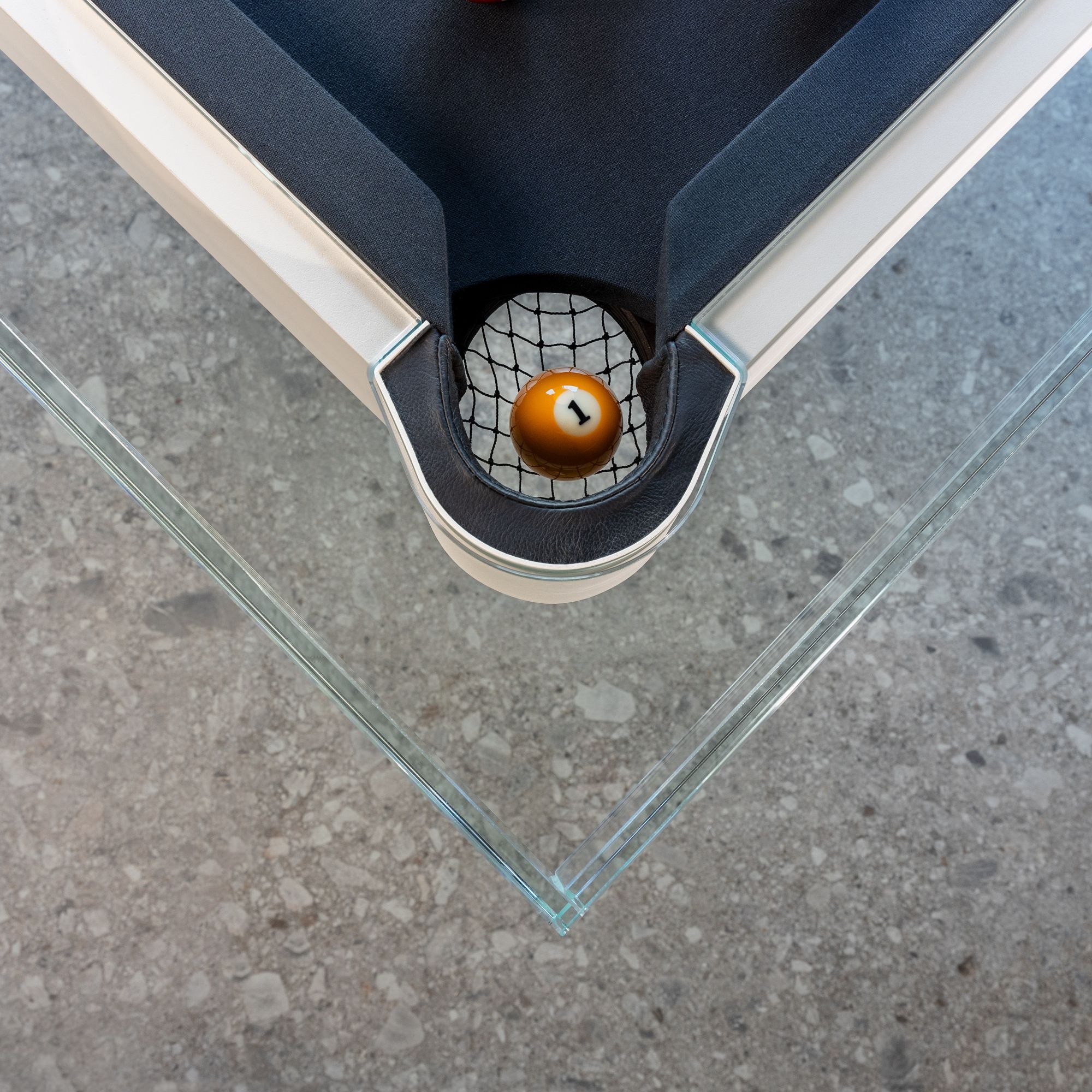 The Shadow billiard table, with dimensions of 239.2x137.7x78H cm, transforms every space in your home into a unique and unparalleled game room; created by FAS Pendezza entirely in transparent glass, with details in metal and leather, this billiard table ensures fun and elegance. Shadow is easily matchable with every furnishing style and setting: whether it's placed inside a large, avant-garde living room or in a modern game room, Shadow will amaze all your guests and gift you unforgettable moments of conviviality and challenge. Furthermore, the design of this billiard table is distinctive, thanks to its elegant and elongated shape that adds character to any environment. What are you waiting for? Hurry up and purchase this beautiful Shadow billiard table at Newpop.it! Invite your friends and enjoy the game without sacrificing design.