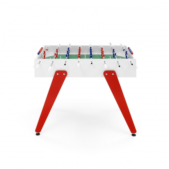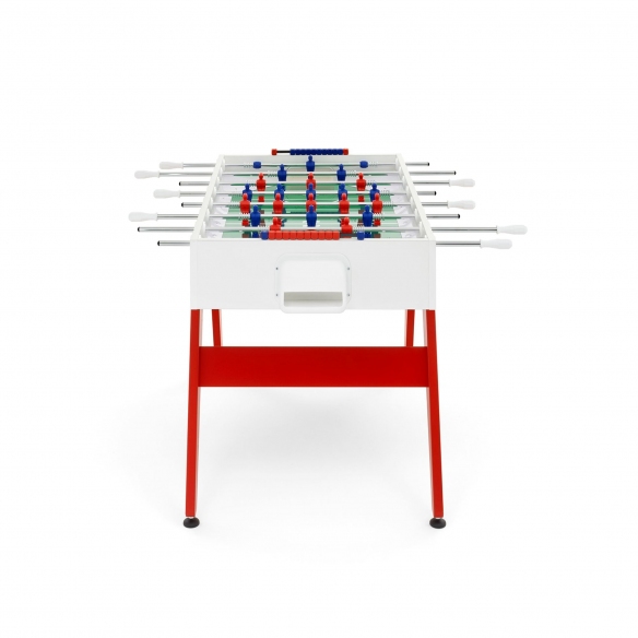 The Cross foosball table is a fantastic piece of design and entertainment crafted by FAS Pendezza from 22 mm thick MDF covered in laminate plastic, legs made of 30 mm painted birch plywood, and a playing field in high-resistance tempered glass. This foosball table has a contemporary design appreciated for its clean lines, reminiscent of both classic and timeless design. Available in red and blue colors, Cross embodies research and elegance, and can be placed in any space of your home or in public areas. Whether it's set up in a game room, living room, or chic pub, its presence is fresh and elegant. Additionally, the rods can be either telescopic or going through, designed to offer smooth and safe maneuvering. The foosball table is both sleek and stable, perfect for unleashing exciting challenges. Included are 5 white balls. Designed by Basaglia and Rota Nodari for FAS Pendezza.