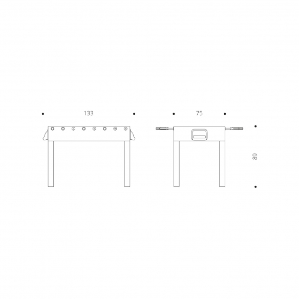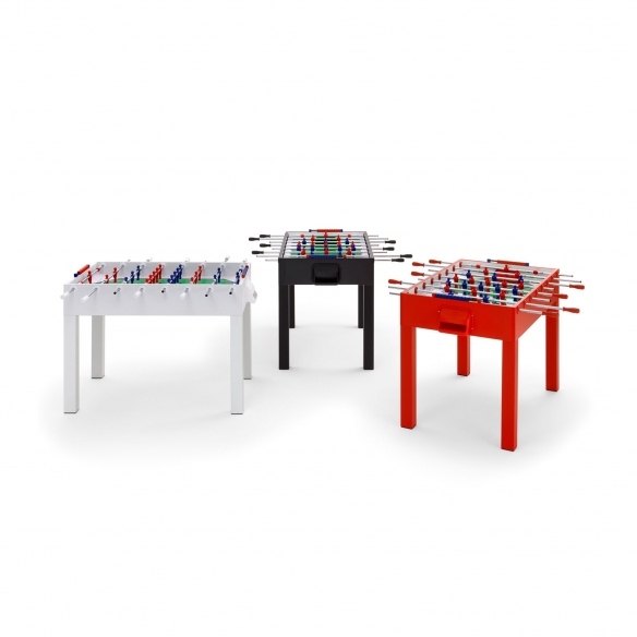 The Fido football table is a fantastic piece of design and fun created by FAS Pendezza from 22 mm thick MDF covered in laminate plastic, legs made of 80 x 80 mm metal box sections with scratch-resistant paint, and a playing field in high-resistance tempered glass. This football  table stands out for the purity and elegance of its lines, thanks to the square-section legs that seamlessly continue into the sides of the play area. Available in red, white, and black colors, Fido represents research and elegance and can be placed in any space of your home or in public areas. Whether it's set up in a game room, living room, or chic pub, its presence is fresh and elegant. Moreover, the rods can be either telescopic or going through, designed to ensure smooth and safe gameplay. The football table is both sleek and stable at the same time, perfect for launching into exciting challenges. Included are 5 white balls. Designed by Basaglia and Rota Nodari for FAS Pendezza.
