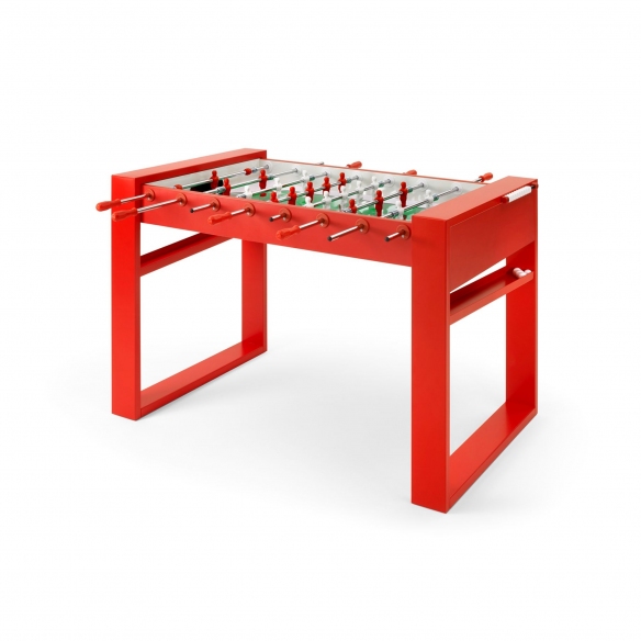 The Tour ’65 football table is an excellent piece of design and entertainment produced by FAS Pendezza using 22 mm thick wood covered in laminate plastic, with 120 x 30 mm metallic box-section legs and a high-resistance tempered glass playfield. This football table boasts a rigorous design that conveys stability and elegance. Available in red, white, and black, the Tour ’65 embodies research and sophistication, and can be placed in any space of your home or in public areas. Whether set up in a game room, living room, or chic pub, its presence is both fresh and elegant. It features a futuristic ball retrieval system; it is the first to be made with an innovative bushing that secures with just one screw. Additionally, the rods can be either telescopic or going through, designed to ensure smooth and safe gameplay. The football table is sleek and stable at the same time, ideal for engaging in captivating challenges. Included are 5 white balls. Designed by Basaglia and Rota Nodari for FAS Pendezza.