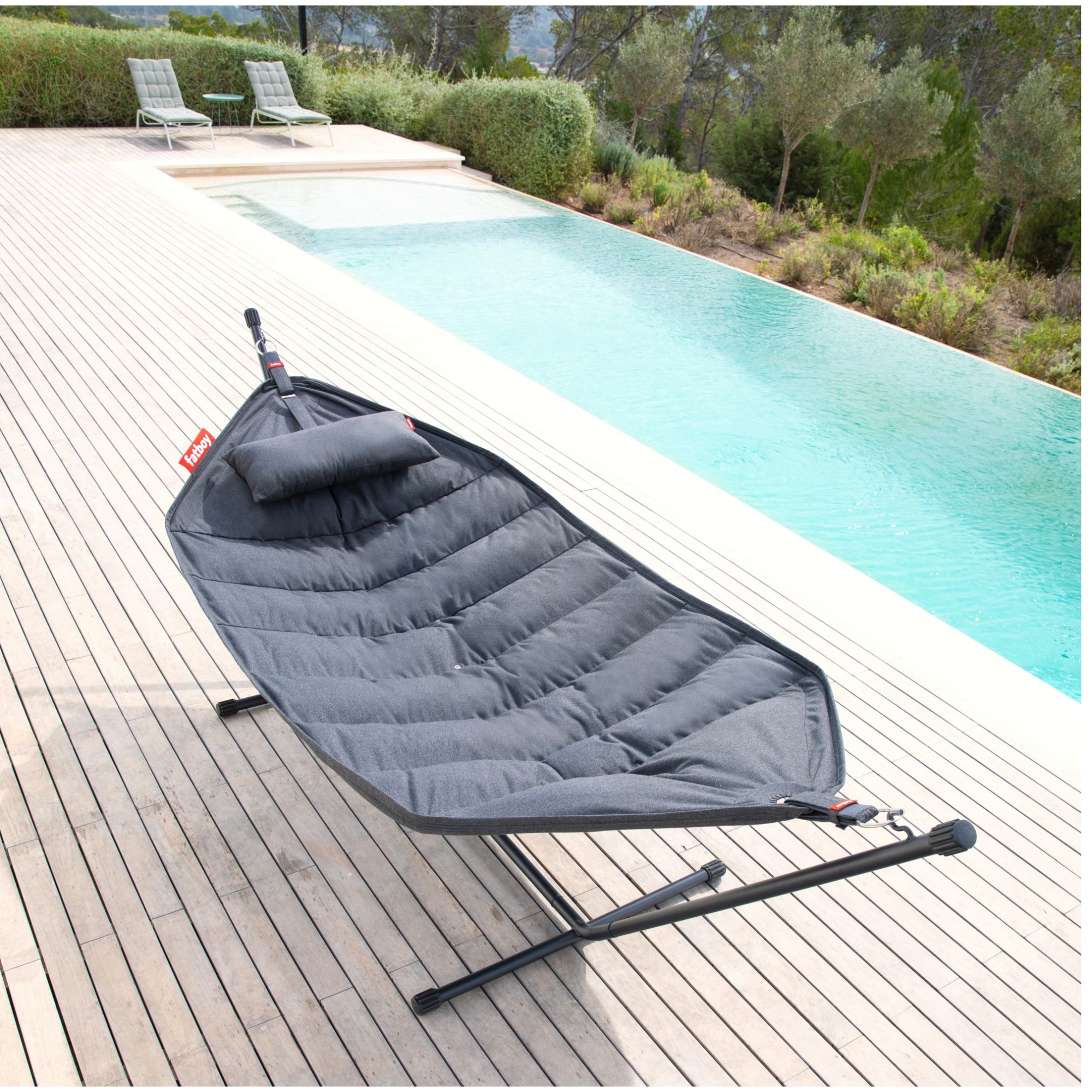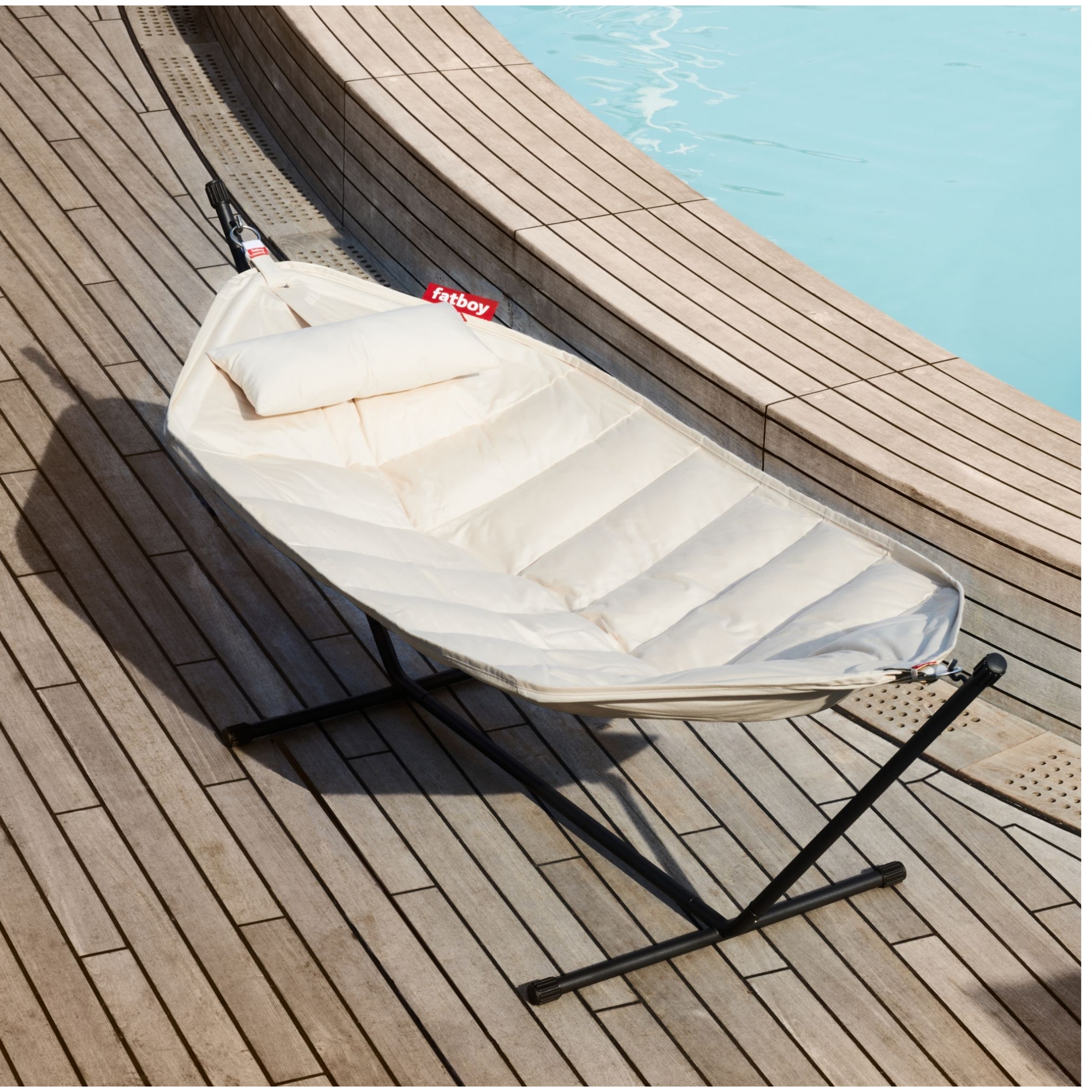Headdemock Superb hammock made with sturdy acrylic fabric and metal and rubber frame. Available in 8 color shades as regards the fabric of the hammock and in 2 as regards the structure, Superb is the alternative version to the classic Headdemock hammock with a reinterpretation as regards the fabric (more resistant to UV rays and atmospheric agents ) and the color patterns used: choose your favorite and sink into the comfort of Headdemock Superb! Designed and built by Fatboy.
