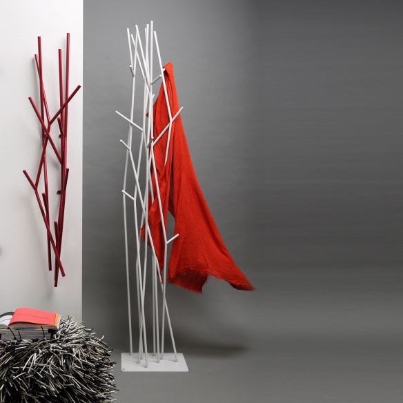 Latva painted steel standing coat rack. The trees in the appendix, symbolic and peculiar to the Finnish landscape, find an exclusive reincarnation in Latva: a unique idea for decorating your spaces. Designed in collaboration with Covo, Latva standing coat rack is inspired by the nature of Finland and is available in bright colors to liven up any living space. Designed by Mikko Laakkonen.