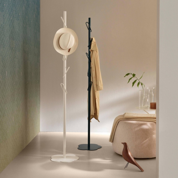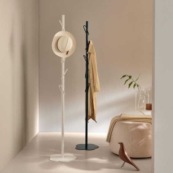 The MyFlower coat stand is a magnificent work of art shaped like a flower (from which it derives its name) with five petals. Made from painted steel, this free-standing coat hanger promises durability and longevity. Available in 18 delightful colors, MyFlower boasts an original and contemporary design, making it easily adaptable to any interior decor style and setting. Whether it is placed in the entrance hall of your home, in a modern living room, or in a more traditionally designed bedroom, the MyFlower coat stand will undoubtedly become the focal point of conversations with your friends and relatives. The base, 5mm in thickness, provides the foundation for the steel tube that forms the main structure, to which are welded 5 coat hooks made from 8mm rod. The "leaves" of the coat stand serve not only as decorative elements but also as practical hooks where you can hang clothes, bags, hats, and various accessories, thus offering a space-saving solution for your home. The MyFlower coat stand exemplifies the union of functionality, aesthetics, and innovation, making it an ideal choice for design enthusiasts. Designed by Alalda_design for Meme Design.
