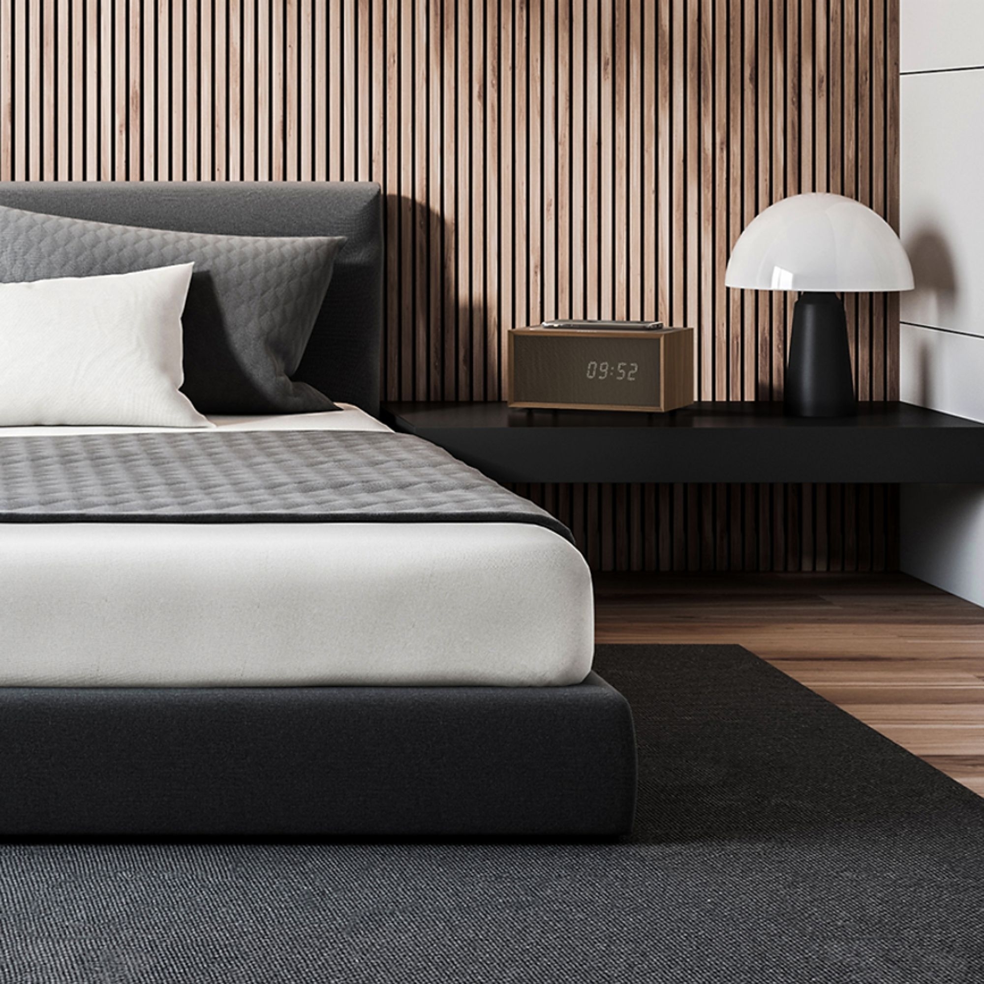 The Geneva Time Digital is a sophisticated Bluetooth speaker with wireless charging, crafted with 2 variants of composite marble, genuine wood veneer, metal, and leather. This accessory epitomizes the perfect blend of style and functionality, delivering a portable listening solution with notable added value: the ability to wirelessly charge your devices. Whether in your kitchen, living room, or home office, this speaker can be taken wherever you go! The Geneva Time / Digital features an internal battery that retains the time, alarm, and paired Bluetooth devices for up to 4 days when unplugged. It offers exceptional acoustic quality: presenting a clear and balanced sound capable of reproducing all genres, from pop to metal, without distortion even at high volumes. If you're seeking a portable listening device that combines high audio performance, elegant design, and technological convenience, the Geneva Time Digital with wireless charging is an excellent choice.