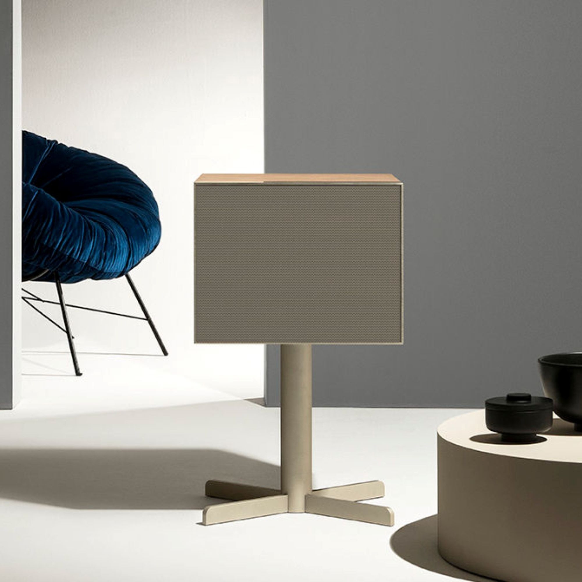 The DeCon Stereo Hi-Fi Speaker by Geneva marks a new chapter in home audio, blending minimalist design with high-quality audio performance. Whether you're listening to pop, metal, rock, or the latest deep bass dance beats, DeCon offers an extraordinary acoustic experience. Featuring a robust construction thanks to the use of steel, aluminum, and wood, DeCon ensures durability and resilience. With its sleek finish that makes it suitable for any home environment, from modern to classic, DeCon is not merely a speaker, but a true piece of furniture: whether placed in the living room or bedroom, this product offers style and elegance. Thanks to its proprietary digital sound dynamic processing and its large subwoofer, music is rendered boldly and with great detail at very low volumes and can reach astonishing volume levels without any audible distortion.