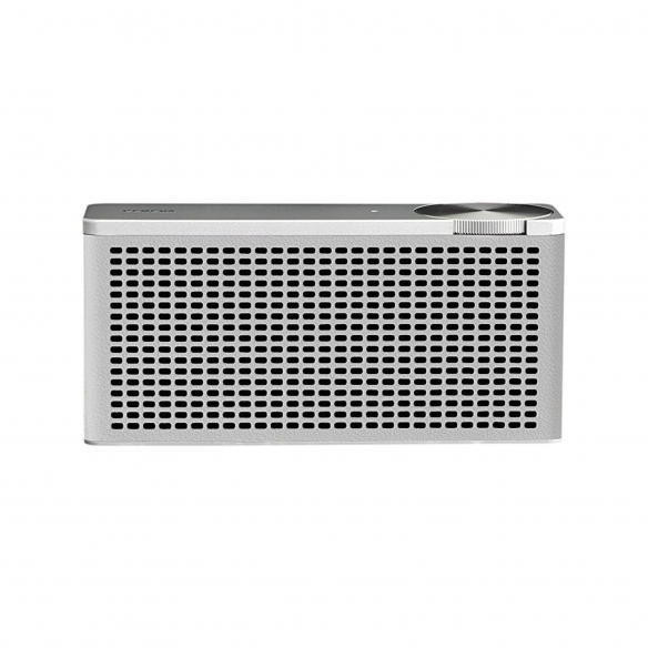 The Touring/XS Bluetooth speaker is a petite accessory for all music lovers, crafted by Geneva in eco-leather and aeronautical-grade aluminum. This speaker is so small it can fit in your bag, yet it delivers powerful audio with deep and satisfying bass at any volume. Additionally, the battery has the capacity to last up to 20 hours. Thanks to its single aluminum dial, time-saving automatic Bluetooth connection, and 3.5 mm jack, streaming from your smartphone, tablet, or MP3 player to the Touring/XS couldn't be simpler. Small but mighty, the Touring/XS Bluetooth speaker is a must-have for those who cannot live without music.