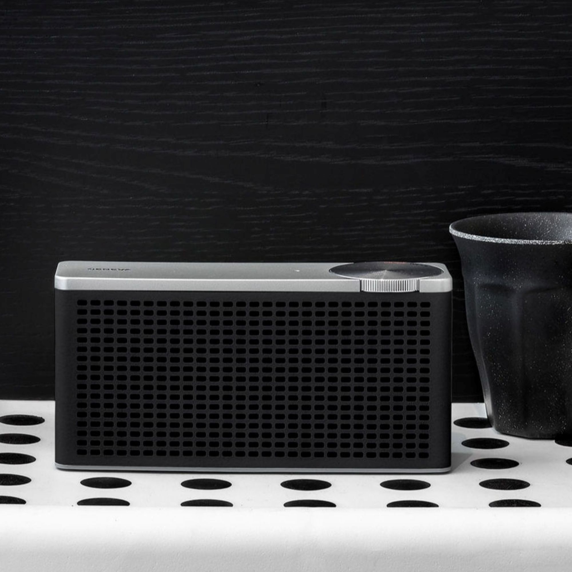 The Touring/XS Bluetooth speaker is a petite accessory for all music lovers, crafted by Geneva in eco-leather and aeronautical-grade aluminum. This speaker is so small it can fit in your bag, yet it delivers powerful audio with deep and satisfying bass at any volume. Additionally, the battery has the capacity to last up to 20 hours. Thanks to its single aluminum dial, time-saving automatic Bluetooth connection, and 3.5 mm jack, streaming from your smartphone, tablet, or MP3 player to the Touring/XS couldn't be simpler. Small but mighty, the Touring/XS Bluetooth speaker is a must-have for those who cannot live without music.