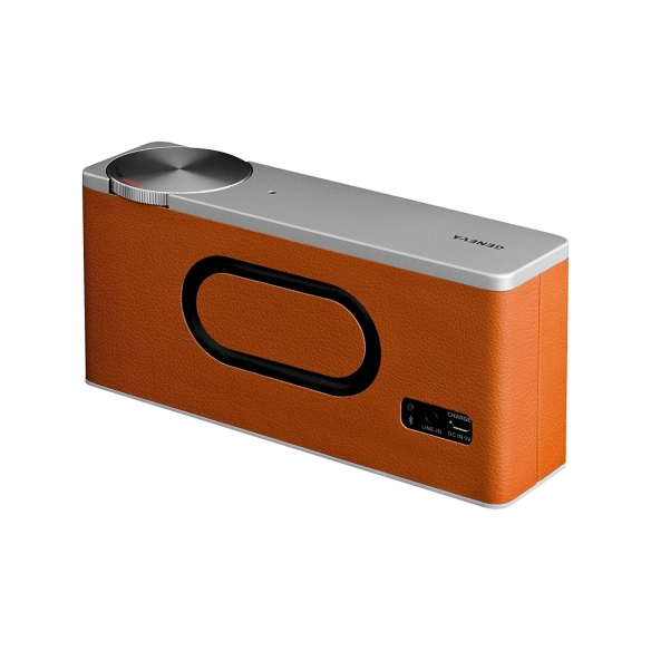 The Touring/XS Bluetooth speaker is a petite accessory for all music lovers, crafted by Geneva in eco-leather and aeronautical-grade aluminum. This speaker is so small it can fit in your bag, yet it delivers powerful audio with deep and satisfying bass at any volume. Additionally, the battery has the capacity to last up to 20 hours. Thanks to its single aluminum dial, time-saving automatic Bluetooth connection, and 3.5 mm jack, streaming from your smartphone, tablet, or MP3 player to the Touring/XS couldn't be simpler. Small but mighty, the Touring/XS Bluetooth speaker is a must-have for those who cannot live without music.