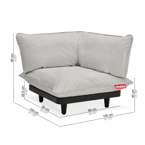 Paletti corner armchair composed of pallets made from recycled PP TPE materials, steel backrest and foam padded cushion covered with Sunbrella® fabric in 6 colors. Relax, drink, place objects, lie down: everything is possible with this fantastic armchair! UV rays resistant and waterproof, both as regards the pallet and the cushions, the Paletti armchair is designed to "live" outside. Create your lounge set with different pallets that can be joined with practical hooks and form real outdoor sofas! Excellent quality combined with multiple functionality: the Paletti corner armchair is the perfect companion for lovers of idleness! Designed and built by Fatboy.