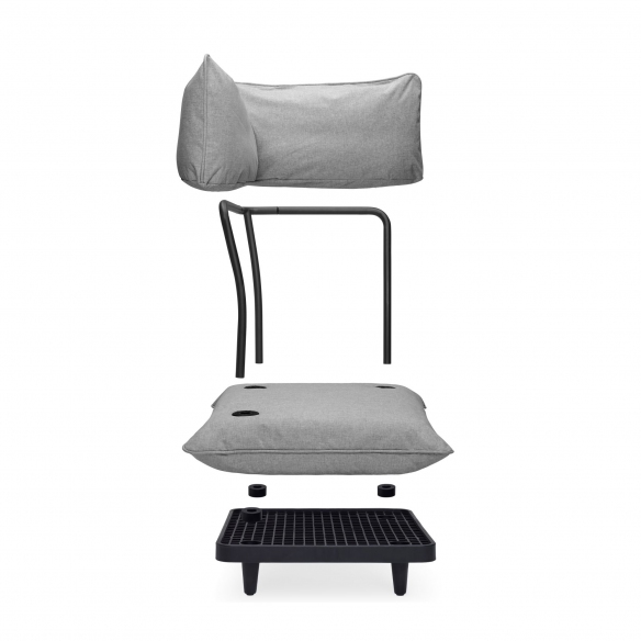 Paletti corner armchair composed of pallets made from recycled PP TPE materials, steel backrest and foam padded cushion covered with Sunbrella® fabric in 6 colors. Relax, drink, place objects, lie down: everything is possible with this fantastic armchair! UV rays resistant and waterproof, both as regards the pallet and the cushions, the Paletti armchair is designed to "live" outside. Create your lounge set with different pallets that can be joined with practical hooks and form real outdoor sofas! Excellent quality combined with multiple functionality: the Paletti corner armchair is the perfect companion for lovers of idleness! Designed and built by Fatboy.
