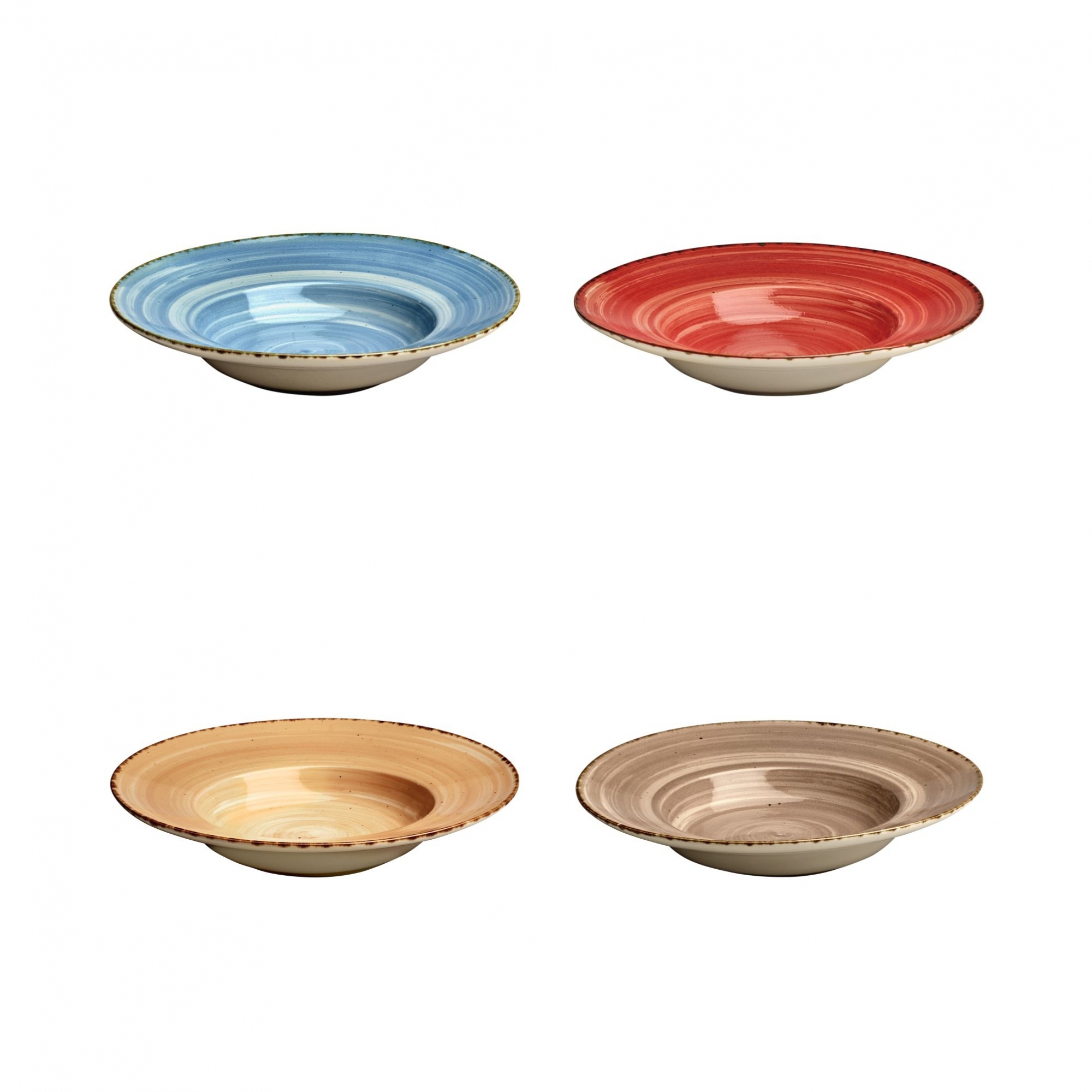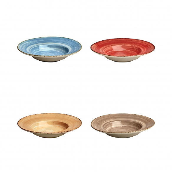 Multicolor 12-piece porcelain stoneware dinnerware set. The set consists of 4 dinner plates, 4 deep plates and 4 side plates. Strictly handmade, each detailed finish shows the quality and attention to detail of the manufacturing process. Featuring bright and vibrant colors, the dynamic lines highlight the uniqueness of this set. Bring a touch of liveliness and elegance to your table, choose Kaleidos!