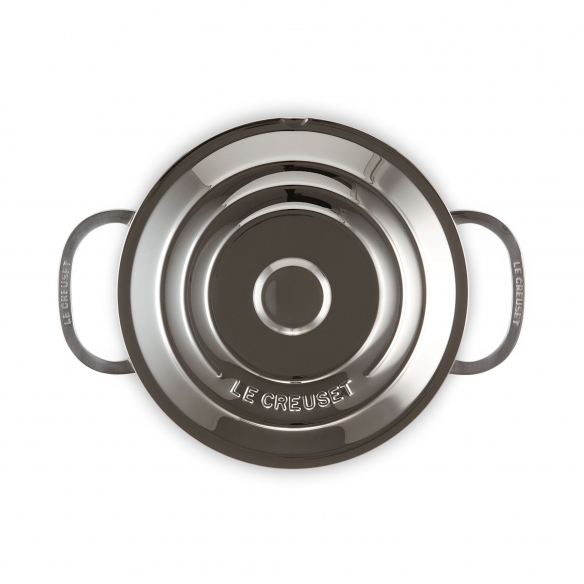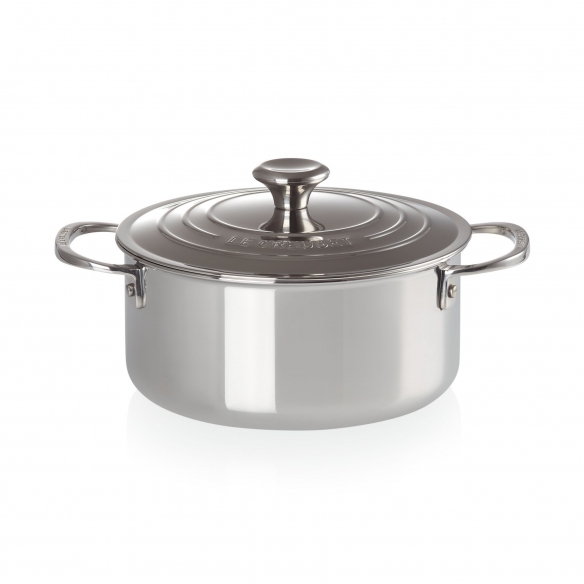 Stainless steel casserole including a lid (diam. 24 cm). Featuring the iconic three-ring motif signed by Le Creuset, this casserole is ideal for all your creation: from cooking pasta to potatoes, rice to stews and much more! Its resistance will surprise you: the 3-layer technology spreads heat evenly and gradually to the entire surface. Designed to ensure outstanding performance, it' ideal for everyday cooking, while its capacity indicators make your cooking experience easier and more enjoyable! Lifetime warranty!