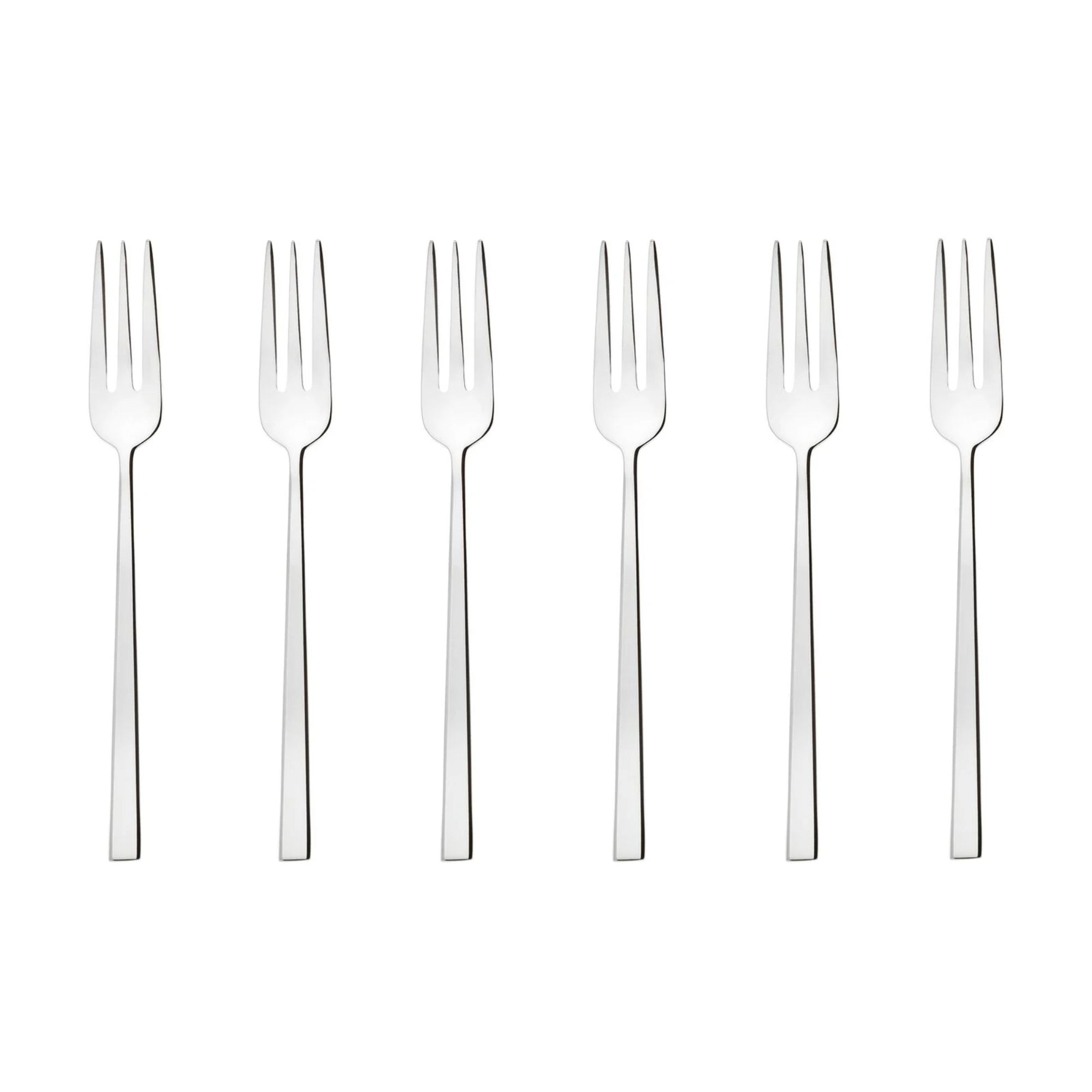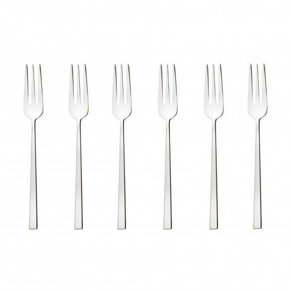 Rock 6 dessert forks with monobloc handle made of high quality 18/10 stainless steel. Current, casual, captivating design which adds a touch of class and grit to your table. Very resistant to the wears and lasting over time, Rock dessert forks are the ideal to enjoy your favourite dishes together. Washable in the dishwasher, this forks will win you over at the first sight! Designed and made by Sambonet.