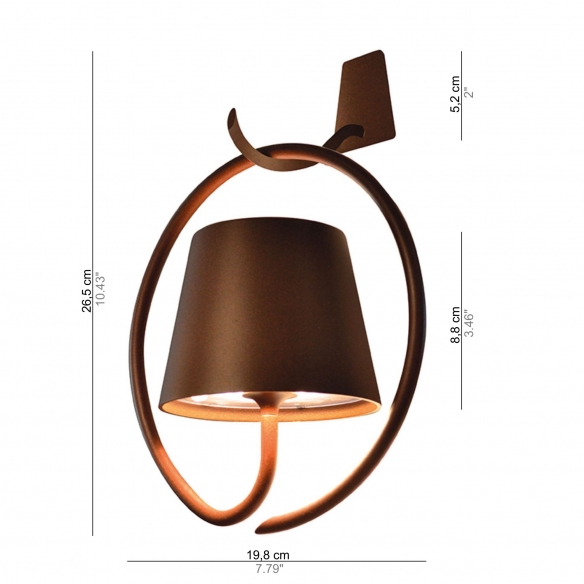 Poldina wall lamp with hook made of powder-coated metal. Available in 3 color finishes (white, dark gray and corten), the Poldina wall lamp is characterized by the fact that it does not require direct connection to the eletricity grid, but has a rechargeable battery via USB. After 6 hours of recharging, Poldina wall-mounted guarantees complete lighting of the environment well for 9 hours. It is turned on and off via the touch switch, located on the top of the diffuser. The charger with USB input is included. Designed by Federico De Majo for Zafferano.