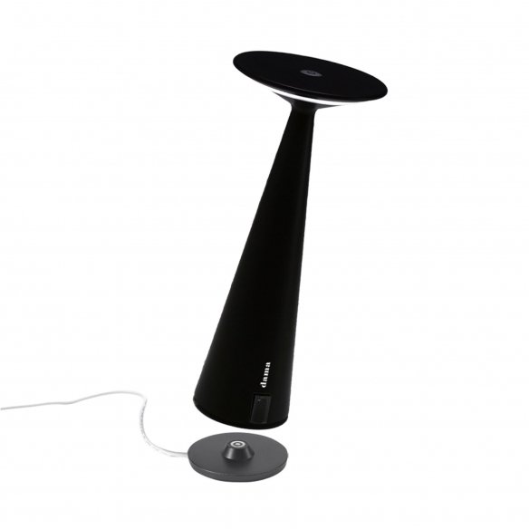 Dama Pro USB rechargeable table lamp made with painted die-cast aluminum body and polycarbonate diffuser. Available in 2 elegant color finishes, the Dama lamp has a rechargeable and replaceable lithium battery with a duration of approximately 9 hours. The contact charging base with touch dimmer and the function for selecting the color temperature of the light between 2700 ° and 3000 ° Kelvin allow easy management of the Dama lamp. Easily recharges via USB! A real futuristic home sculpture!