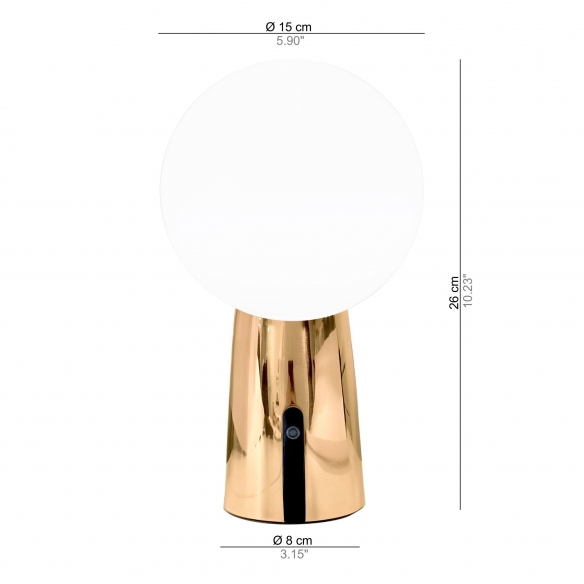 Olimpia Pro Led rechargeable table lamp made with painted aluminum body and mouth-blown satin opal glass diffuser. Available in 5 elegant color finishes (white, dark gray, gold, chrome and copper), the Olimpia table lamp is suitable for both indoor and outdoor environments. Equipped with a contact charging base, touch dimmer and an accessory to change the color of the light (cover LED9), this splendid lamp has a very simple and linear design, comparable to a small full moon resting on a delicate body. Extremely versatile thanks to the battery with autonomy up to 9 hours, the Olimpia Pro Led lamp is ready to brighten any environment in an evocative way!