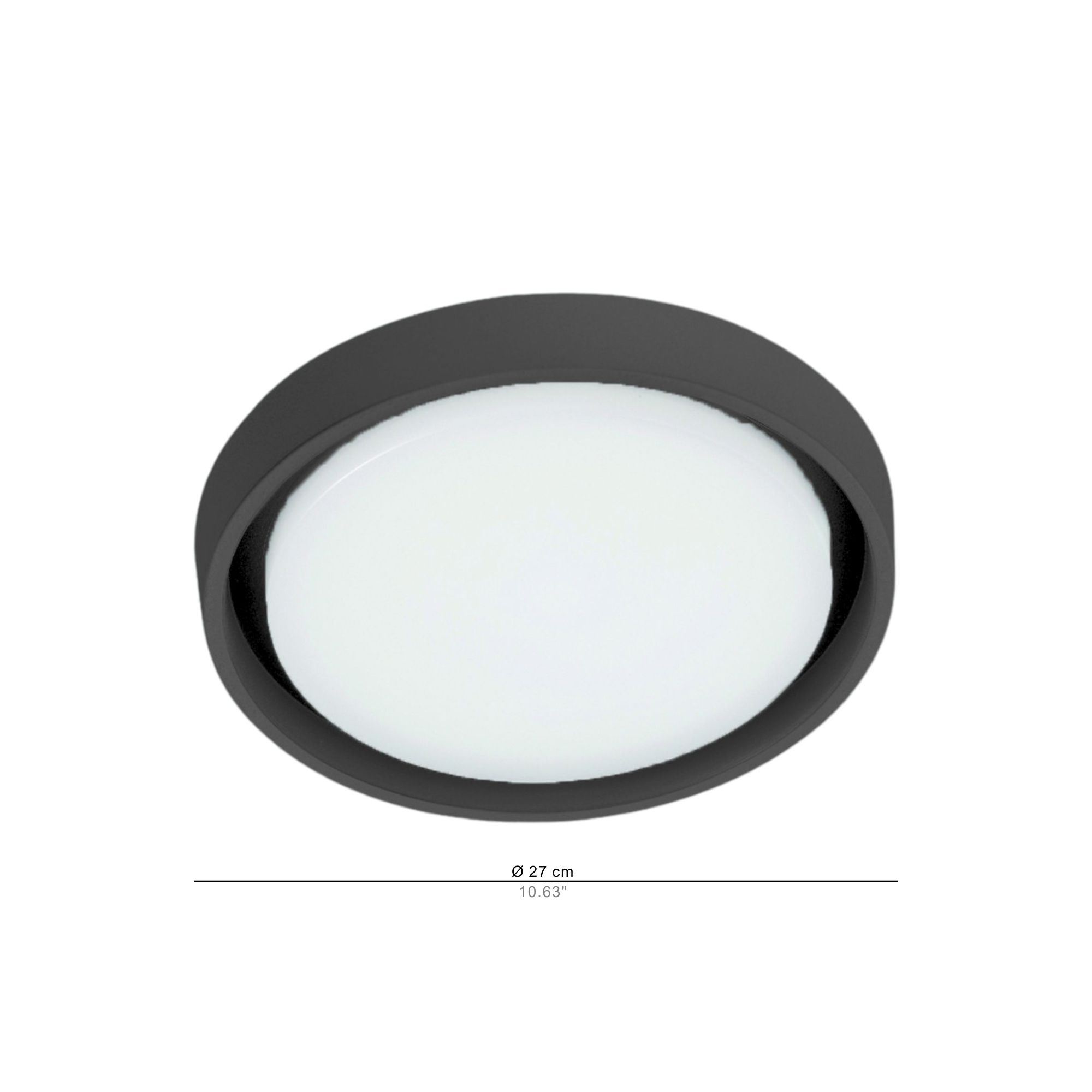 Alu wall-ceiling ruond lamp 27 cm with painted die-cast aluminium frame and a satin-finish opaline polycarbonate diffuser. Available in 2 colour finishes (white and dark grey). The high IP rating (IP54) makes the lamps ideal for indoor and outdoor use. It can light up outdoor places of houses, hotels, restaurants. Designed by Federico de Majo per Zafferano.