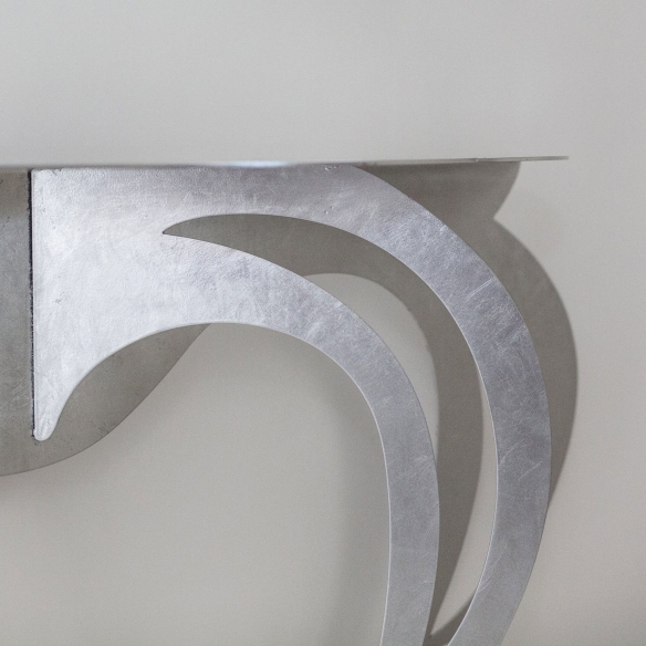 Small Ballerina console made of iron with curve and harmonious legs and the loops on the back. Iron is the brand’s flag material that is laser cut to mix with colours and return a light and a contemporary style. Available in four colour variants (silver, beige, white and gold); it is the piece of furniture that gives harmony to your entrance. Small Ballerina console will welcome you when you come home tired from a hard day’s work, giving you all the comfort you deserve. Made by Arti e Mestieri.