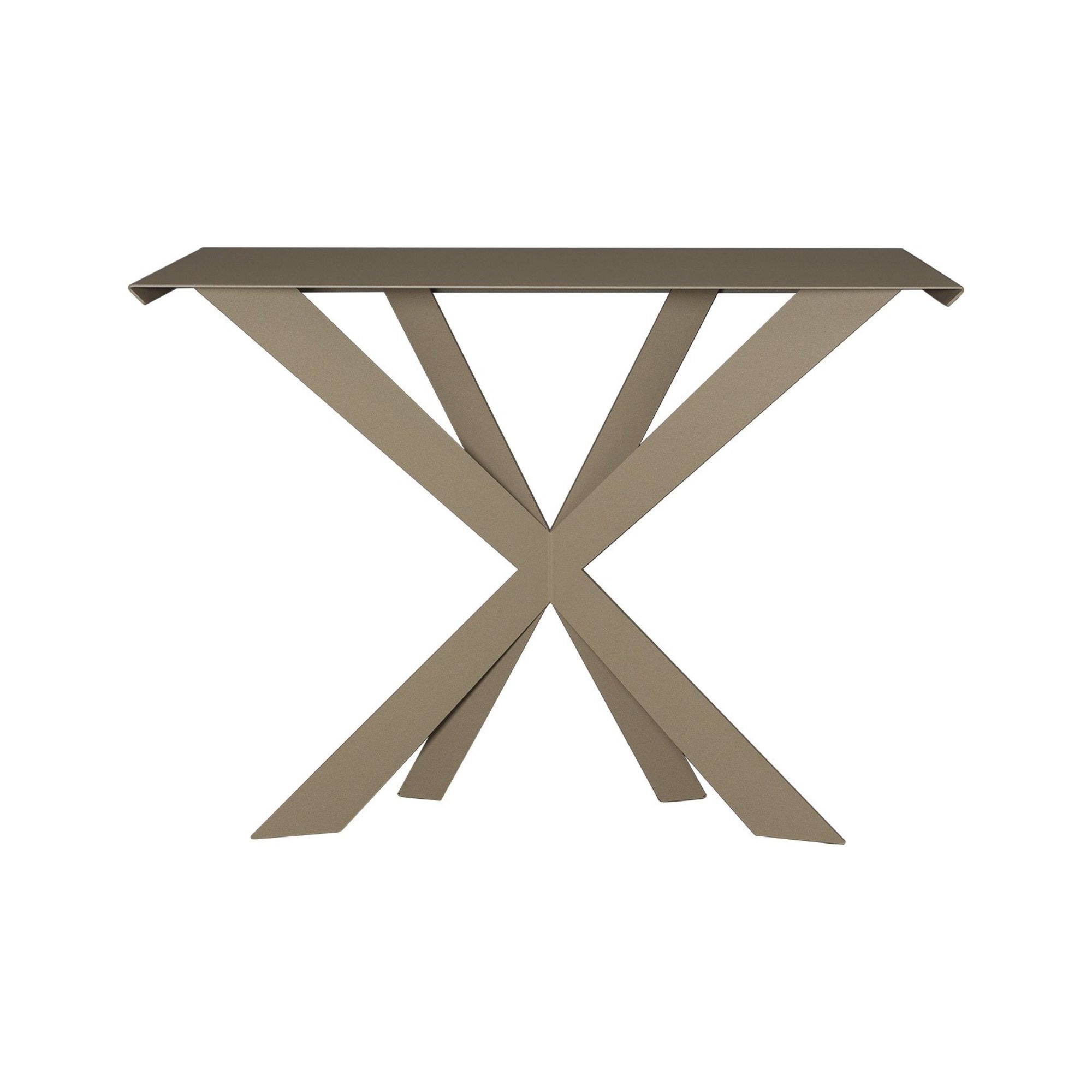 Zeus console made of iron resting on four legs that cross and form an “X”. Iron is the brand’s flag material that is laser cut to mix with colours and return a light and a contemporary style. Available in three color variants (slate, beige and white), it is the piece of furniture that gives harmony to your entrance or living room. Zeus console will welcome you when you come home tired from a hard day’s work, giving you all the comfort you deserve. Made by Arti e Mestieri.