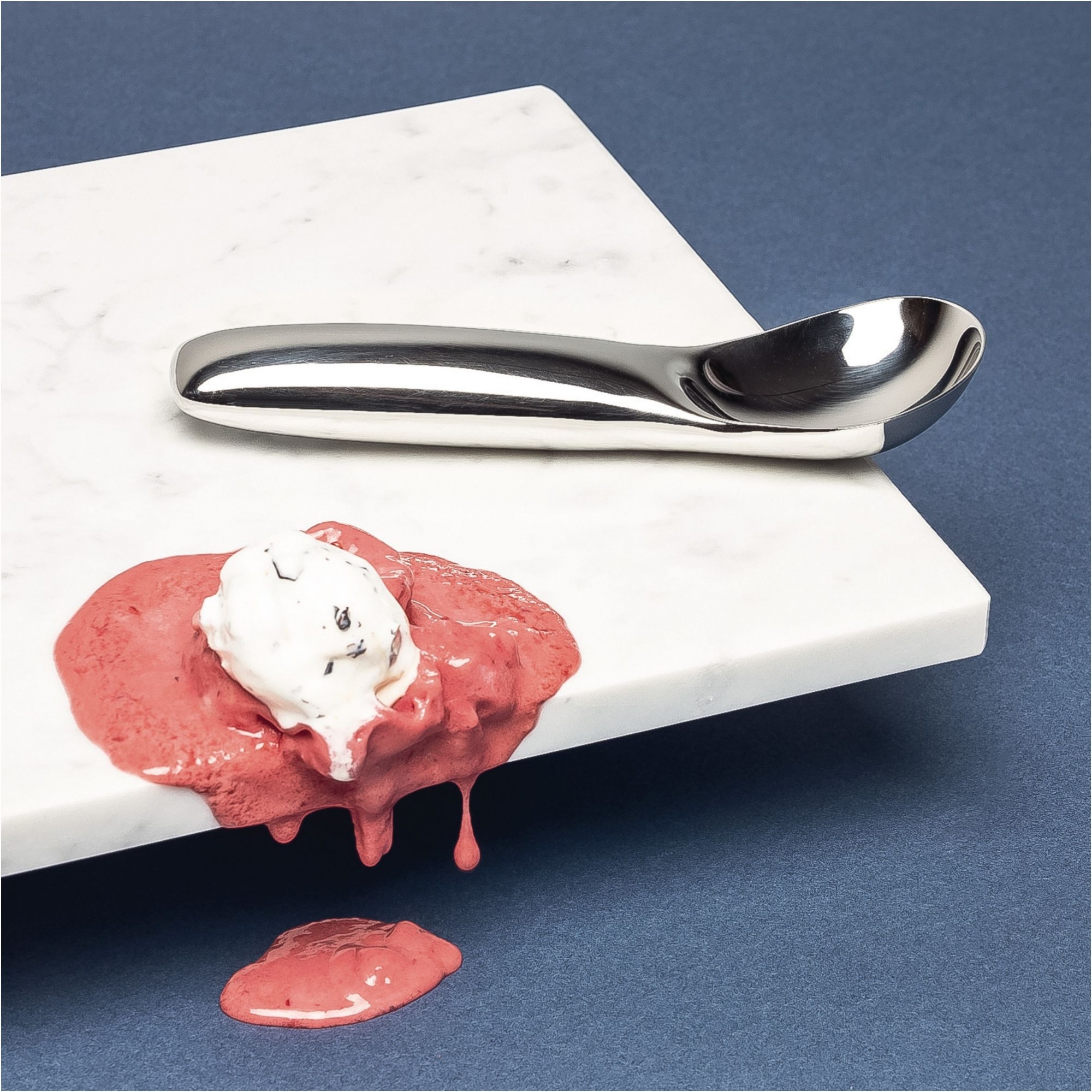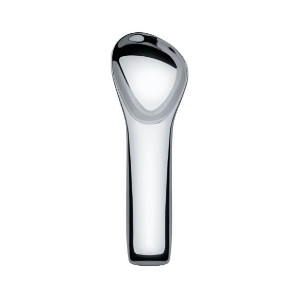 Koki ice cream spoon made of 18/10 stainless steel. An original and functional object, Koki is a kitchen tool, pleasant to the touch, ergonomics and suitable for every type of ice cream in bowl or in cup. The round shape allow creating perfect ice crema balls, thought with the ice cream creamier. Designed by Valerio Sommella for Alessi.