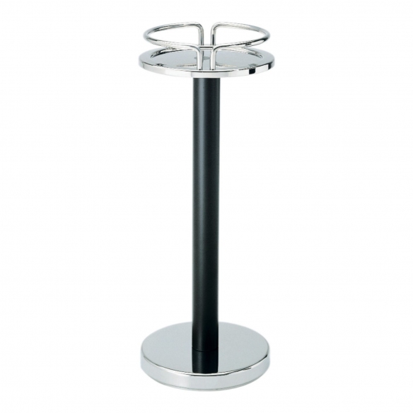 5059 wine cooler stand made of 18/10 stainless steel with lacquered column and dark brown. Ergonomics and sturdy, this wine cooler stand is suitable to the 5052 wine cooler and can hold Champagne and wine bottles. It is compact and light, this wine cooler stand is ideal to both a domestic use and professional use. Brightens of the steel made it a unique object, the spearhead of Alessi products! Designed by Ettore Sottsass for Alessi.