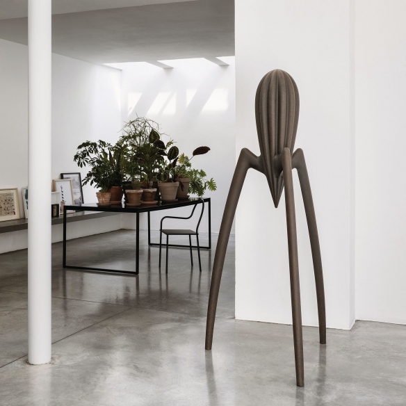 Juicy Salif XXL sculpture made of polyethylene. Iconic and very elegant, the Juicy Salif XXL sculpture will allow you to feel like Alice in the world of great design objects: its 187 cm high in fact stand out on all the furniture, enriching it in a unique way. The iconic citrus squeezer thus becomes an elegant sculpture, ideal for design lovers who want to "magnify" their passions. Designed by Philippe Starck for Alessi.