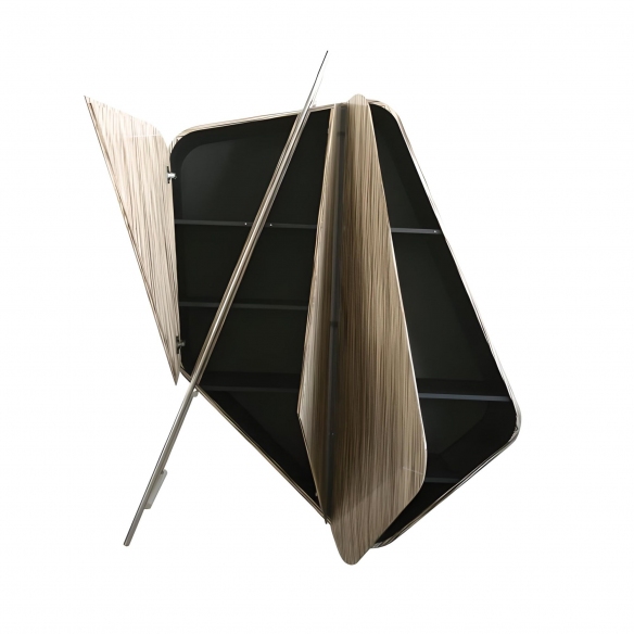 Hidalgo vertical sideboard made of shaded lacquered plywood and painted steel. Available in 2 particular and elegant colour finishes, Hidalgo is the perfect element for contemporary furnishings. Distinctive in shape and shades, Hidalgo has in its presence the distinctive and exclusive character, which makes it closer to a sculpture than to a piece of furniture. Designed by DriadeLab.