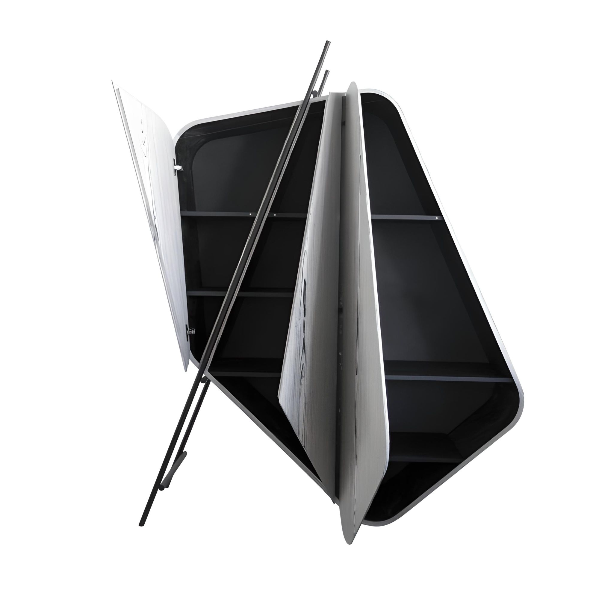 Hidalgo vertical sideboard made of shaded lacquered plywood and painted steel. Available in 2 particular and elegant colour finishes, Hidalgo is the perfect element for contemporary furnishings. Distinctive in shape and shades, Hidalgo has in its presence the distinctive and exclusive character, which makes it closer to a sculpture than to a piece of furniture. Designed by DriadeLab.