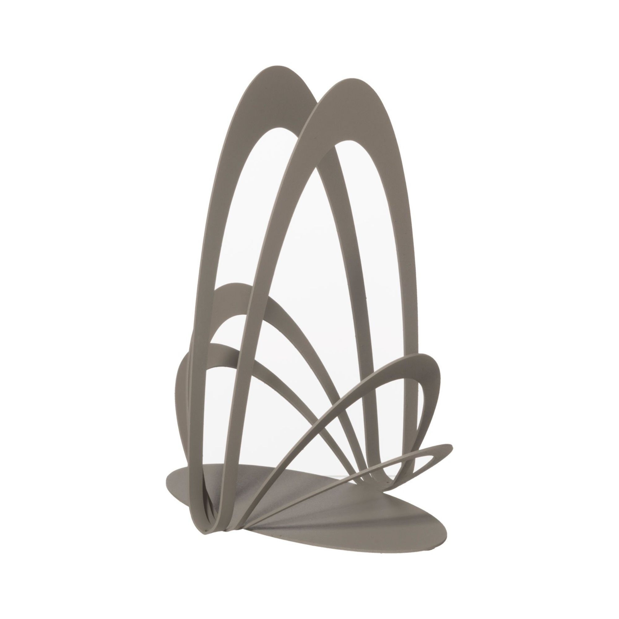 Origami glass holder made of iron with handle and structure with leaves. Available in 3 colours (beige, mud and white). Iron is the brand's flagship material that is laser cut to mix with colours and return light and contemporary mood. Origami glass holder is a functional object and a piece of furniture at the same time. Made by Arti e Mestieri.