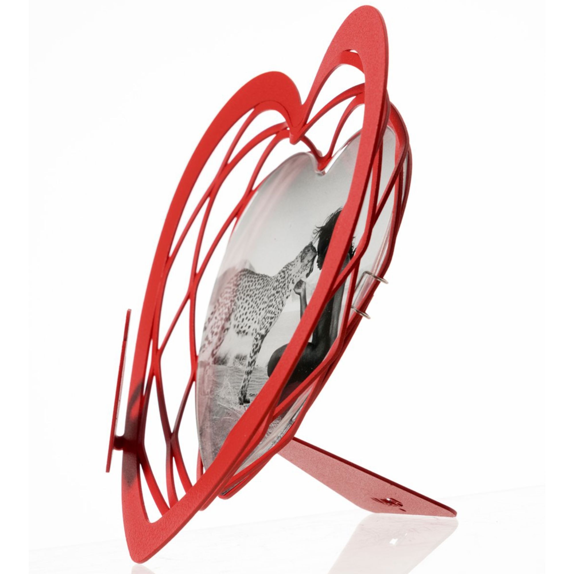 Mon Coeur photo frame made of iron. The frame is made of sinuous lines that converge to form a heart. It has a modern and friendly style, available in slate, marble white and red. Mon Coeur iron photo holder is solid and decorative and will embellish your empty surfaces with the most beautiful memories. Made by Arti e Mestieri.