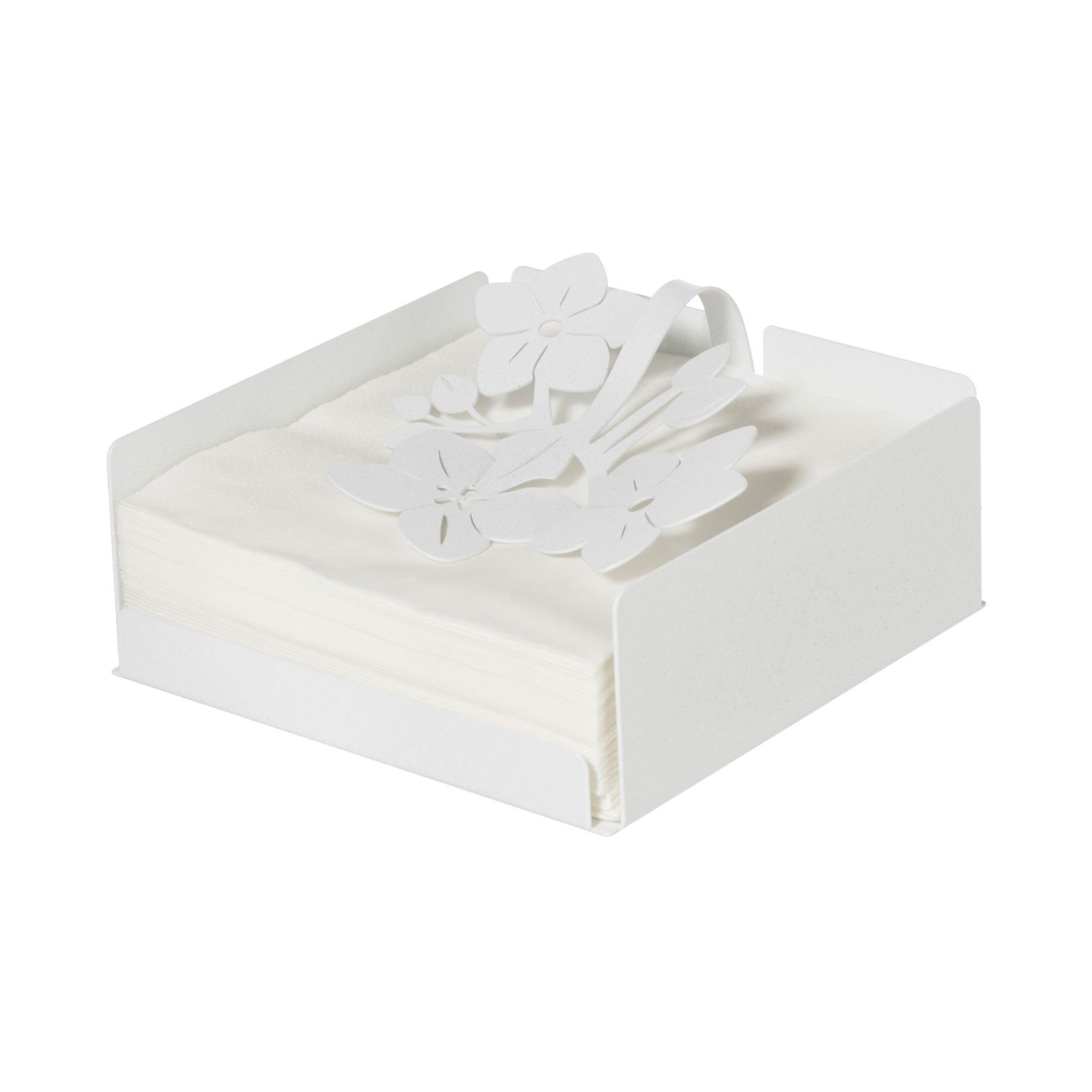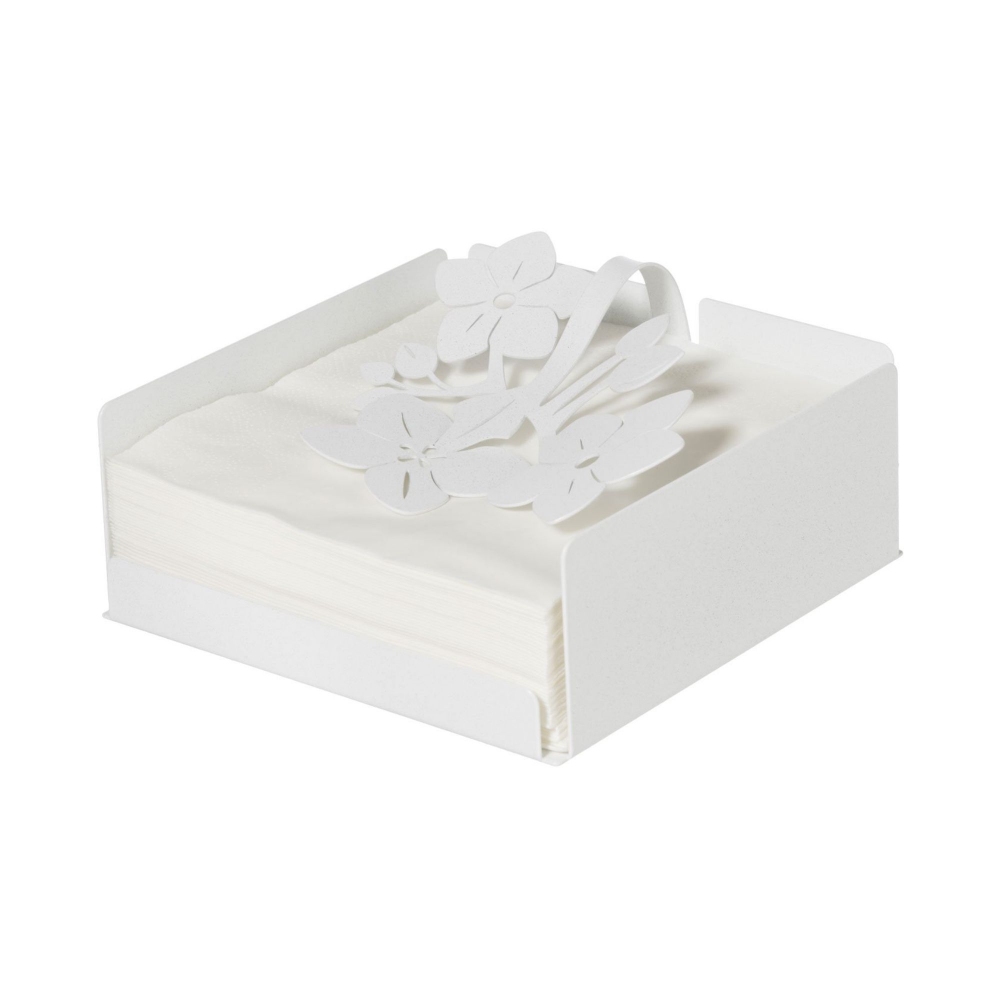 Fior di Loto napkin holder made of iron. The structure consists of four lateral walls and some lotus flowers on the upper part, designed to hold the napkins. Available in three colours, all versatile. Perfect for serving napkin in special dinners or daily meals. Made by Arti e Mestieri.