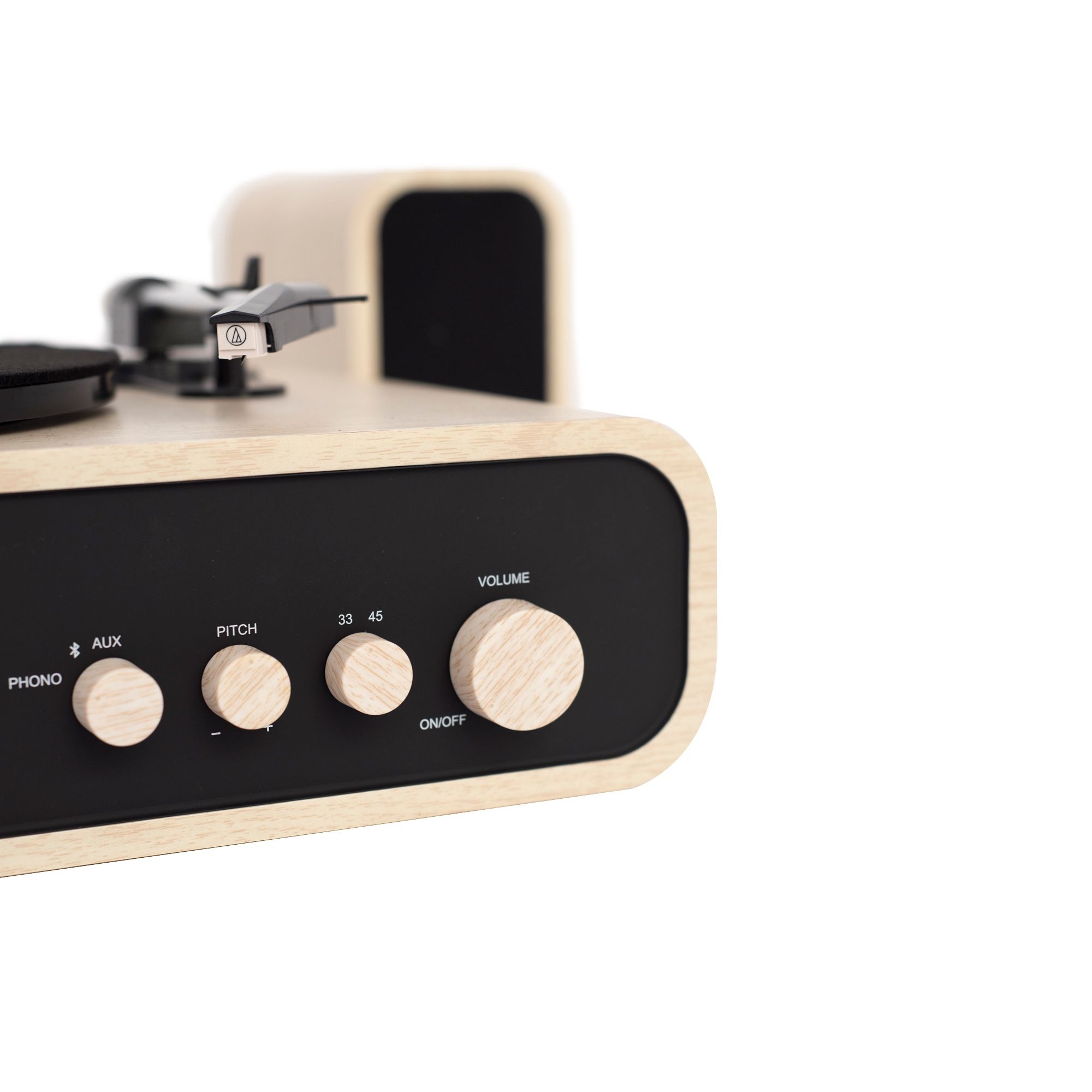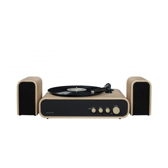 Gig turntable made of wood with finishes in precious metal and plastic textures. Gig includes two speakers and a power supply. The diamond needle and large swivel plate with two speeds. Gig also has a 2.0 w Rms stereo amplification system. The jack input, on the other hand, allows you to insert headphones and other devices. Made by Crosley.